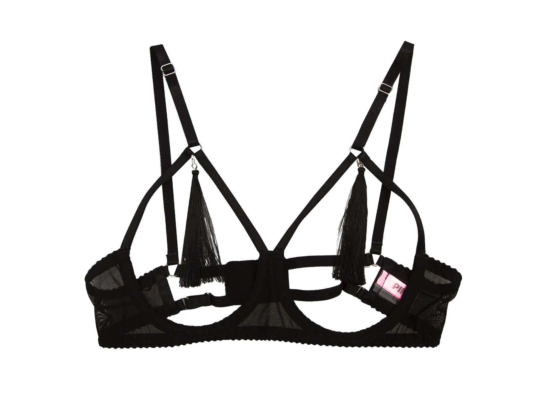 Бюстгальтер с открытыми чашками, на косточках. Шелковистые игривые кисточки добавят пикантности. Лиф регулируется на спинке по ширине, бретели регулируются