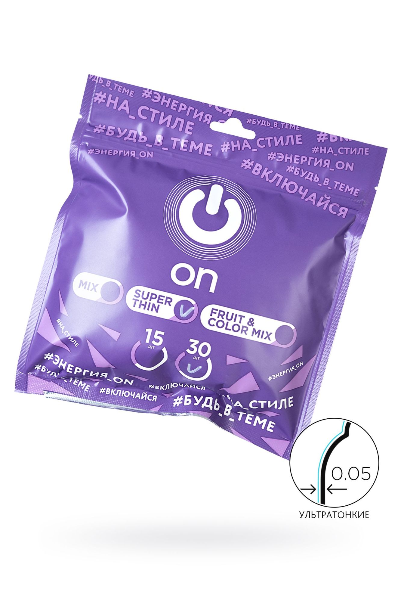 —Презервативы On, super thin, ультратонкие, 18,5 см, 5,4 см, 30 шт.