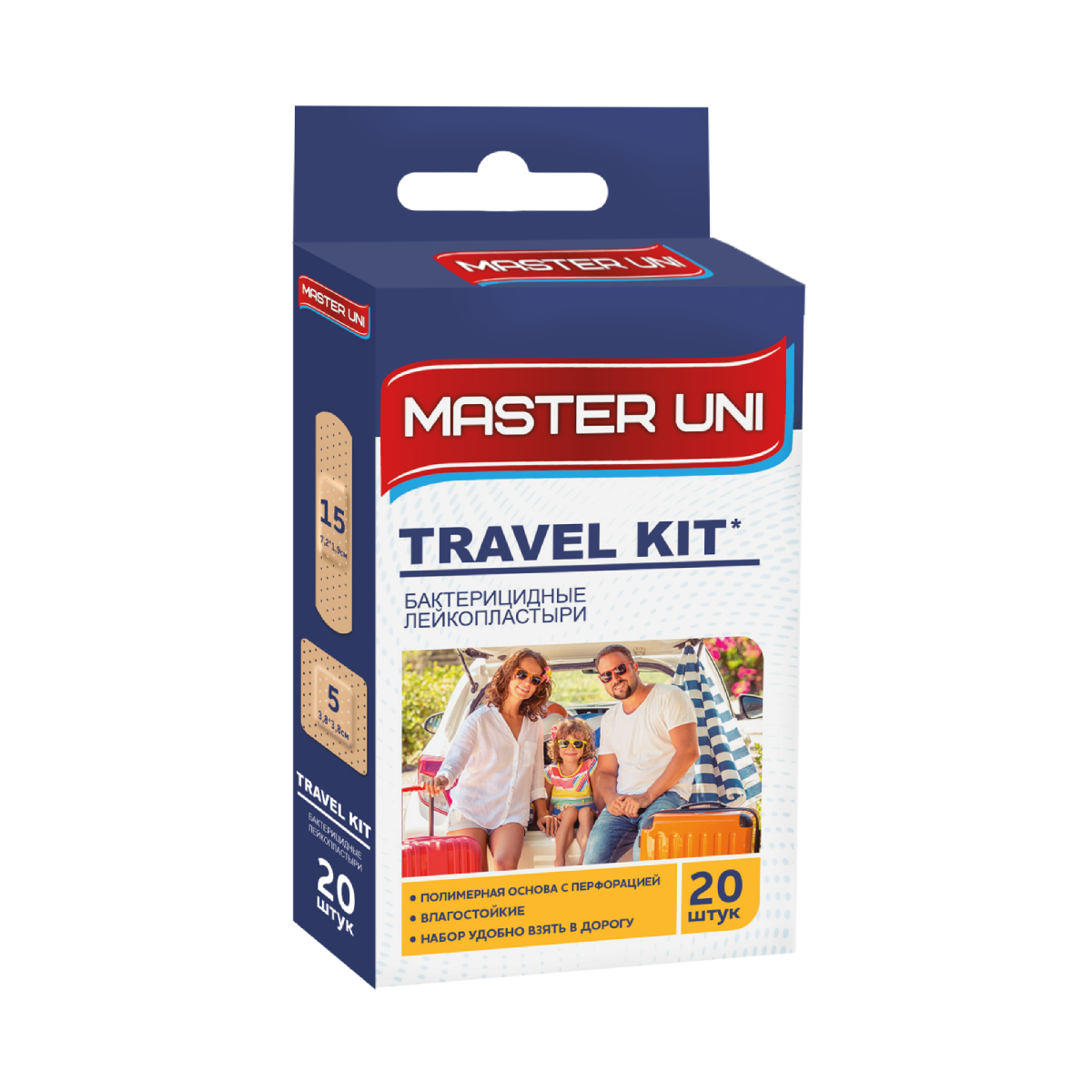 MASTER UNI TRAVEL KIT Лейкопластырь бактерицидный на полимерной основе, 20 шт