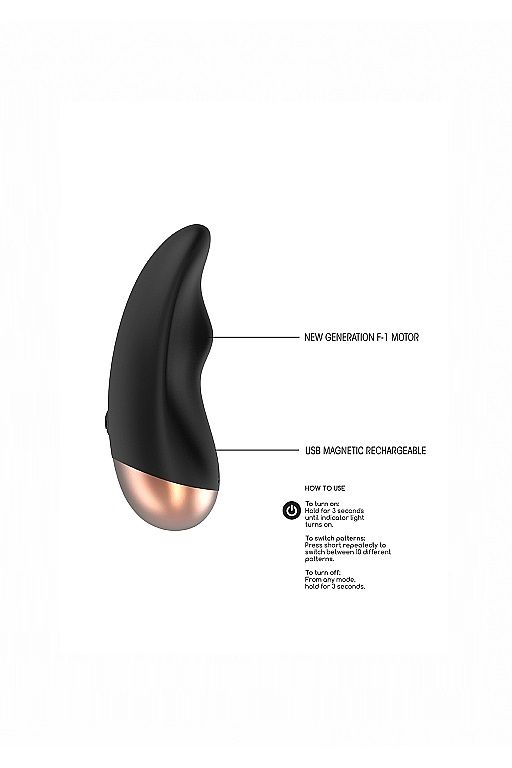 Chic – элегантный клиторальный стимулятор эргономичной формы с небольшим бугорком. Вибромассажер оснащен инновационным электродвигателем нового поколения F1. Приемущество такго типа двигателя в том, что он делает интенсивную стимуляцию очень мягкой даже при мощном максимальном воздействии. Игрушка имеет 10 уникальных функций вибрации, способной достигать 15000 оборотов в минуту.