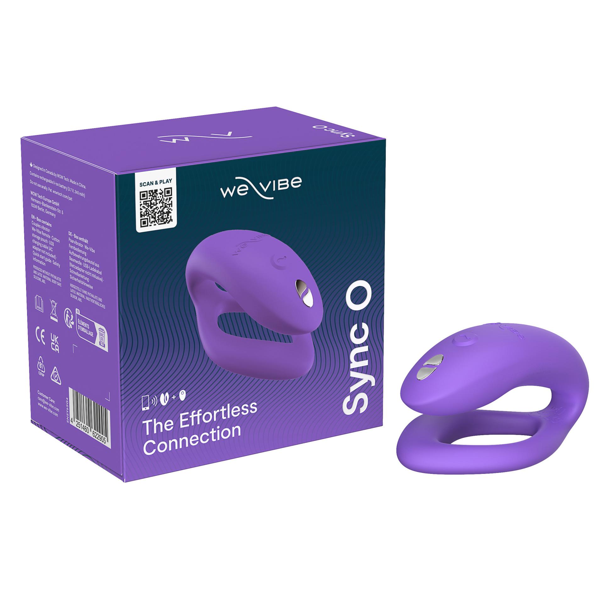 Вибратор для пар с ДУ We-Vibe Sync O, светло-фиолетовый. Роскошная секс-игрушка, которая доставит удовольствие как женщине, так и мужчине. Одна часть вводится внутрь и стимулирует точку G женщины и пенис партнера во время проникновения, другая остается снаружи и ласкает вибрацией клитор.