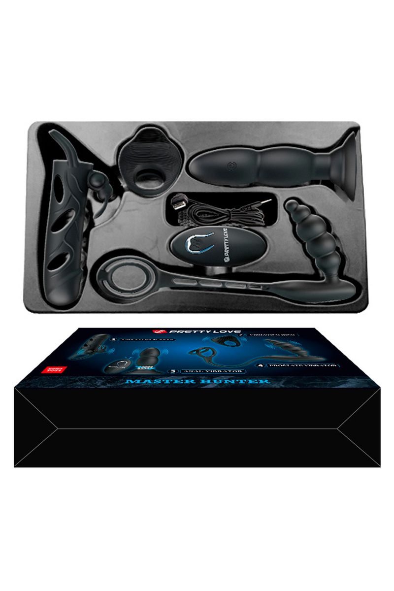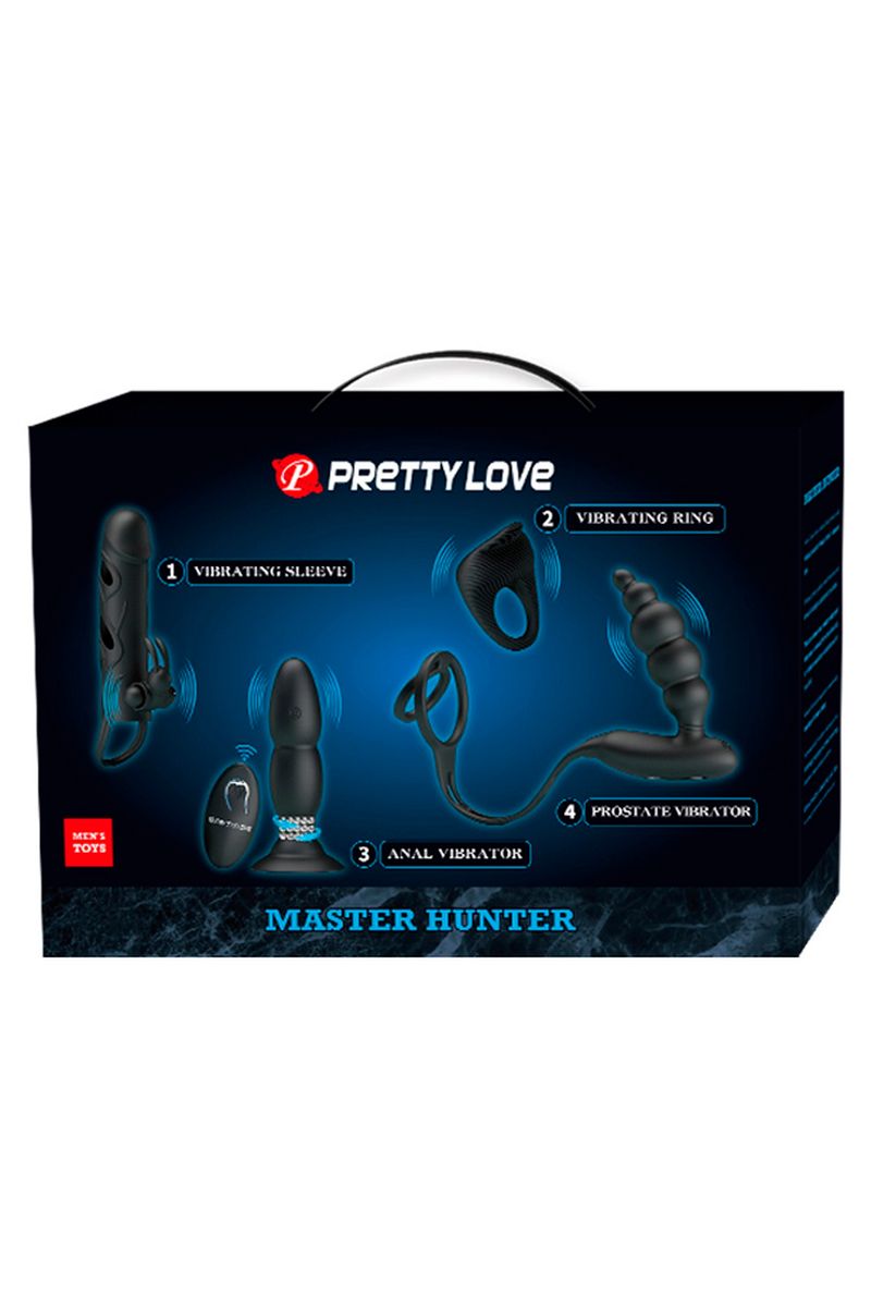 Получите удовольствие от роскоши с коллекцией Master Hunter из 4 предметов. Эта веселая четверка, готовая к мощной стимуляции, идеально подходит для соло и парных игр. Удивите своего партнера этой коробкой вкусностей и проведите веселую ночь. Наслаждайтесь анальной пробкой, которая вибрирует и вращается, многоскоростным массажером простаты с эрекционным кольцом, насадкой на пенис с вибрирующим клиторальным стимулятором и виброкольцом, чтобы дать вам и вашему партнеру вызывающие кульминацию вибрации. Имея такой большой выбор, вы будете возвращаться к этому комплекту снова и снова.