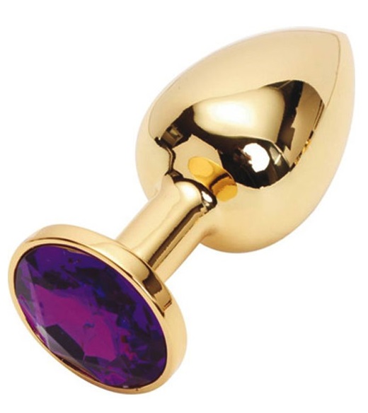 Анальная пробка из металла под золото с ярким кристаллом  внесет разнообразие в вашу интимную жизнь. Обладает сглаженной  формой, что позволяет обеспечить легкое введение и комфортное длительное ношение.  Снабжена ограничительным основанием для безопасного использования.  Характеристики:  Общая длина 7,6 см, рабочая длина 6 см, наибольший диаметр: 2,8 см., вес 60 гр. Упаковка: индивидуальный тканевый мешочек и коробка.