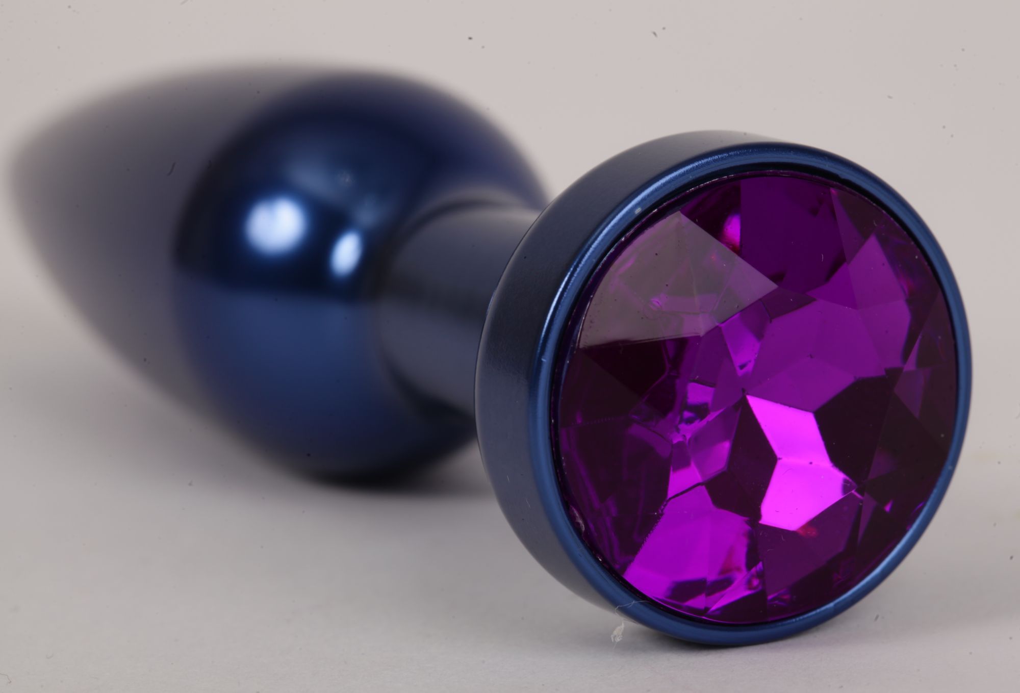 Анальная пробка металл 11,2х2,9см синяя с фиолетовым 47197-MM