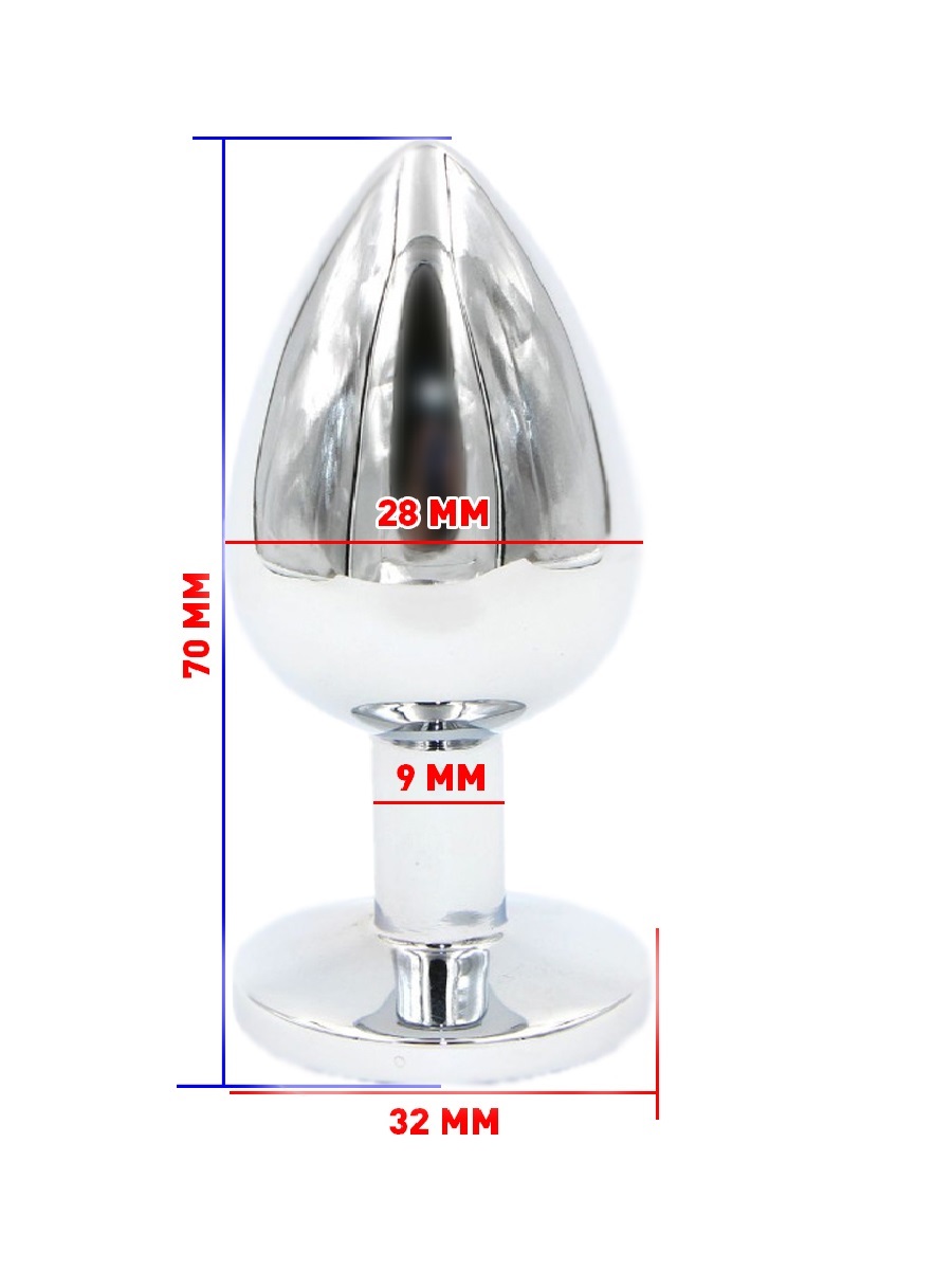 Анальная пробка из металла под серебро с ярким кристаллом  внесет разнообразие в вашу интимную жизнь. Обладает сглаженной  формой, что позволяет обеспечить легкое введение и комфортное длительное ношение.  Снабжена ограничительным основанием для безопасного использования.  Характеристики:  Общая длина 7,6 см, рабочая длина 6 см, наибольший диаметр: 2,8 см., вес 60 гр. Упаковка: индивидуальный тканевый мешочек и коробка.