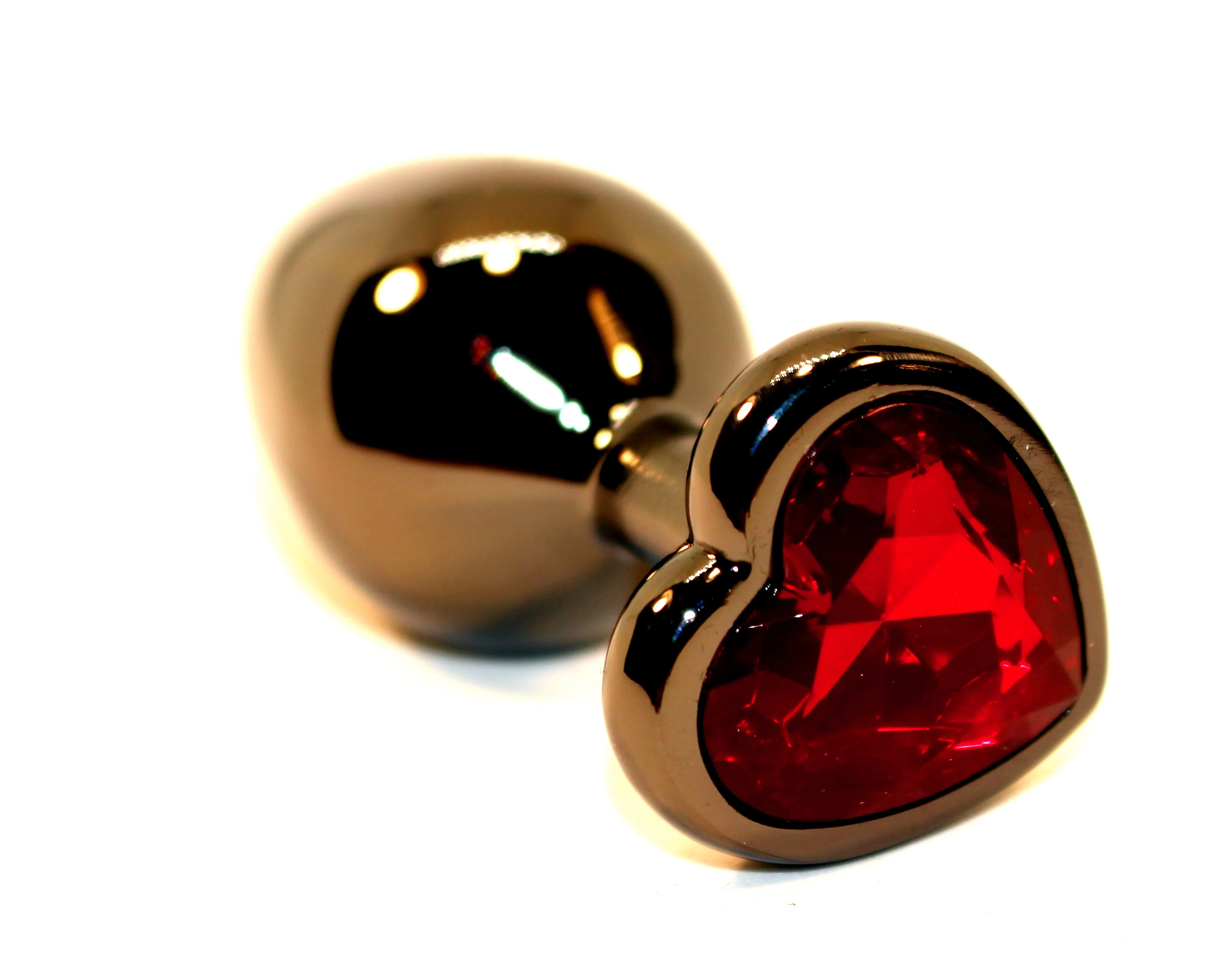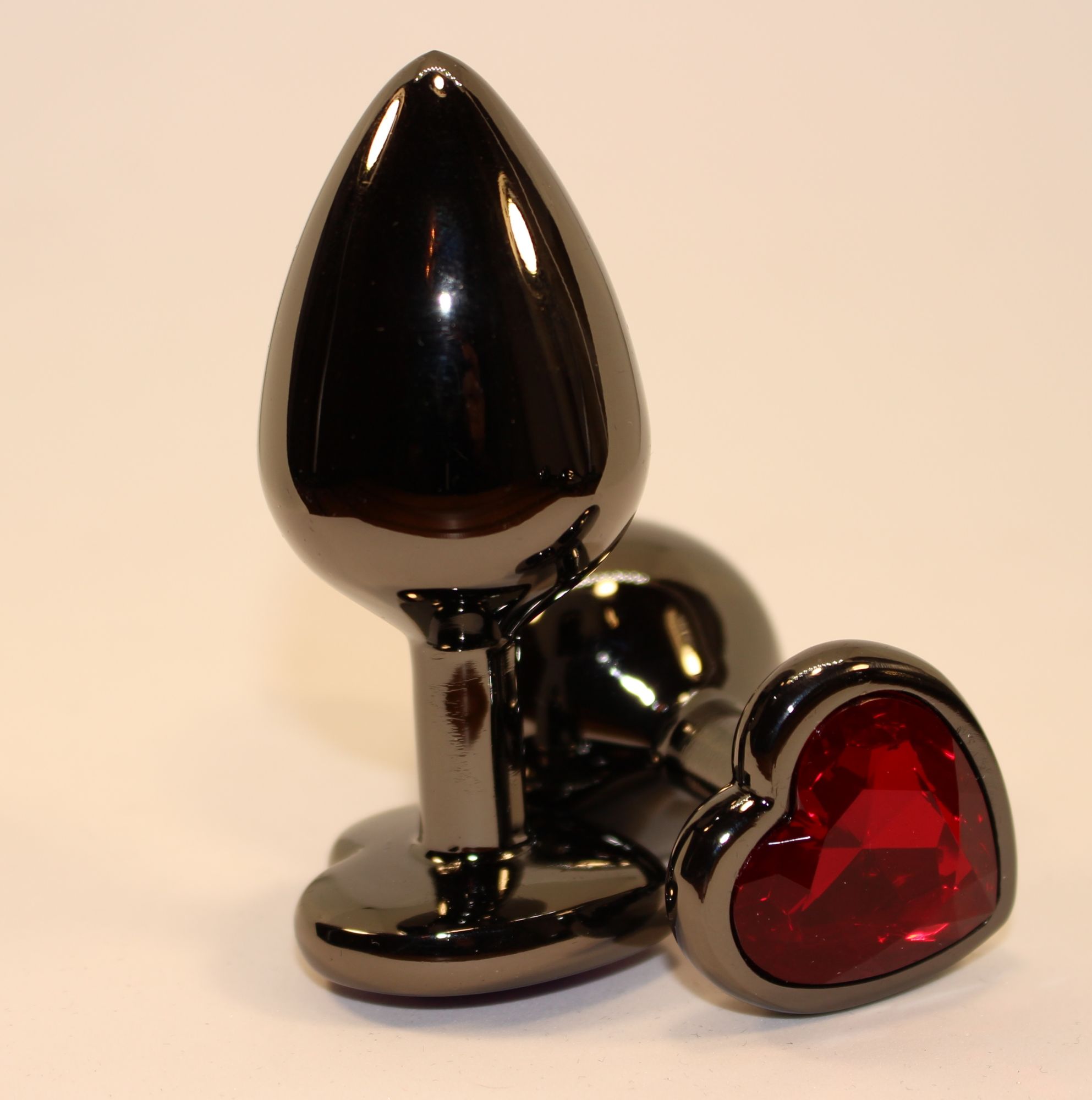 Пробка анальная черная 7,5х2,8см с сердечком красный страз 47438-2MM
