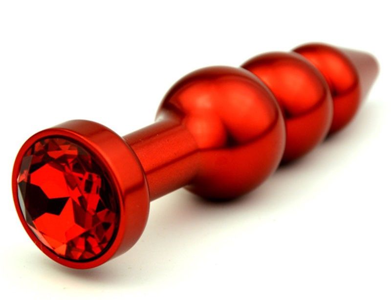 Анальная пробка ярко красного цвета с ярким кристаллом внесет разнообразие в вашу интимную жизнь. Обладает сглаженной рельефной формой, что позволяет обеспечить легкое введение и вызывает дополнительные пикантные ощущения при использовании.  Снабжена ограничительным основанием для безопасного использования.  Характеристики:  Общая длина 11,2 см, высота основания 2,8 см, наибольший диаметр: 2,9 см., вес 100 гр. Упаковка: индивидуальный тканевый мешочек и коробка.