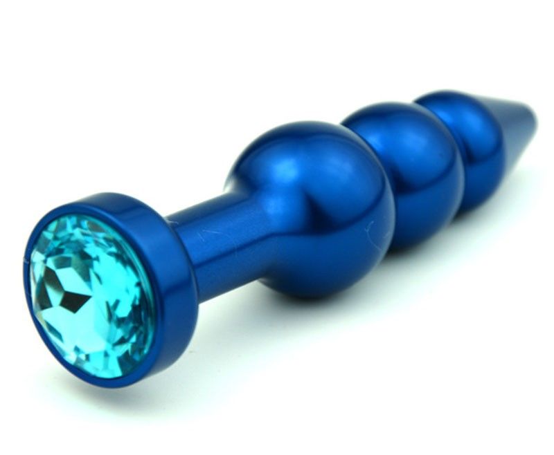 Анальная пробка небесно синего цвета с ярким кристаллом внесет разнообразие в вашу интимную жизнь. Обладает сглаженной рельефной формой, что позволяет обеспечить легкое введение и вызывает дополнительные пикантные ощущения при использовании.  Снабжена ограничительным основанием для безопасного использования.  Характеристики:  Общая длина 11,2 см, высота основания 2,8 см, наибольший диаметр: 2,9 см., вес 100 гр. Упаковка: индивидуальный тканевый мешочек и коробка.