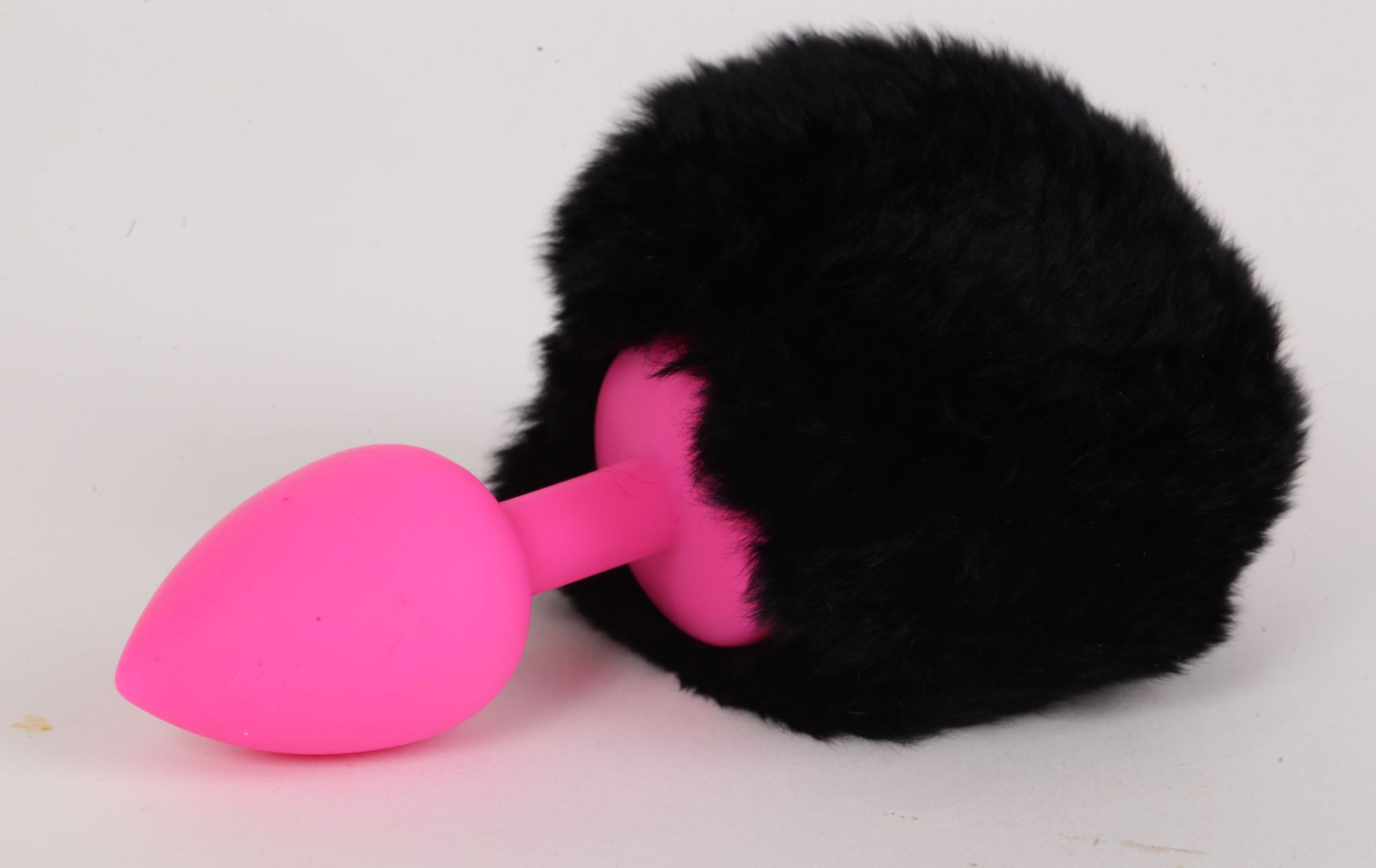 Розовая анальная пробка с черным хвостиком, вносит разнообразие в вашу интимную жизнь. Обладает конусной формой, что позволяет обеспечить легкое введение. Характеристика: длина пробки- 7 см, рабочая длина- 4 см, диаметр- 3 см, длина хвостика- 6 см. Материал- силикон.