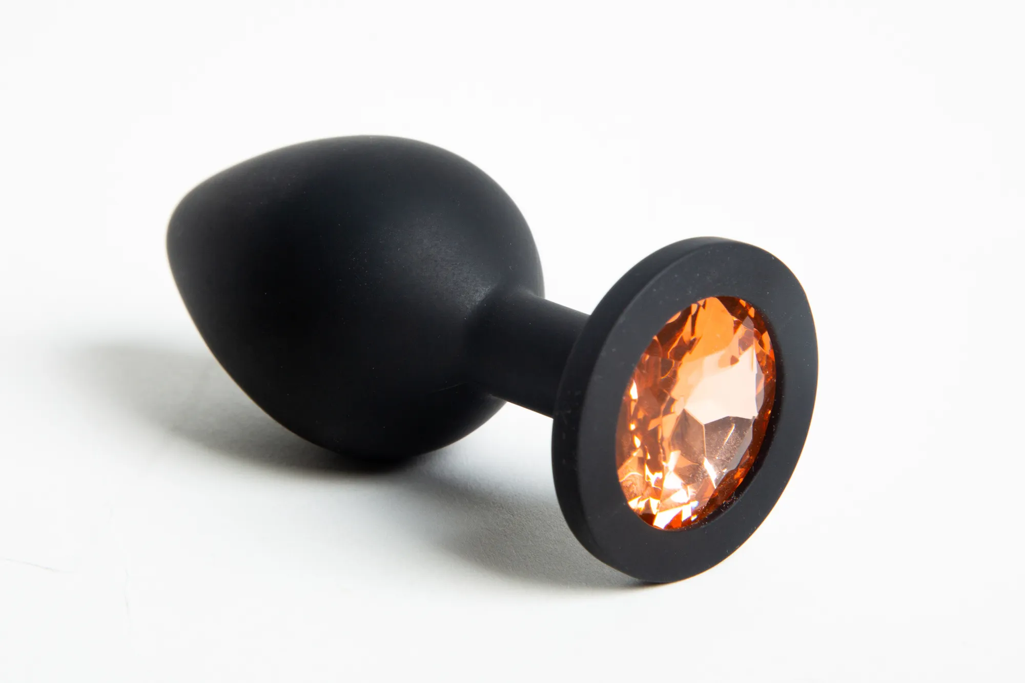 Черная анальная пробка с желтым стразом, вносит разнообразие в вашу интимную жизнь. Обладает конусной формой, что позволяет обеспечить легкое введение. Характеристика: длина- 8,2 см, рабочая длина- 5 см, диаметр- 3,5 см. Материал- силикон.