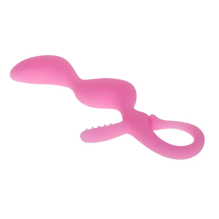 Розовый стимулятор оригинальной формы. Петля  в основании изделия позволяет удобно удерживать игрушку во время стимуляции. Имеет небольшой отросток с мягкими шипиками. Материал- силикагель. Общая длина 17 см, рабочая длина 11 см, максимальный диаметр 3 см, минимальный 1 см, длина отростка- 3,5 см, диаметр- 1,2 см. Упаковка- картонная коробка с принтом.