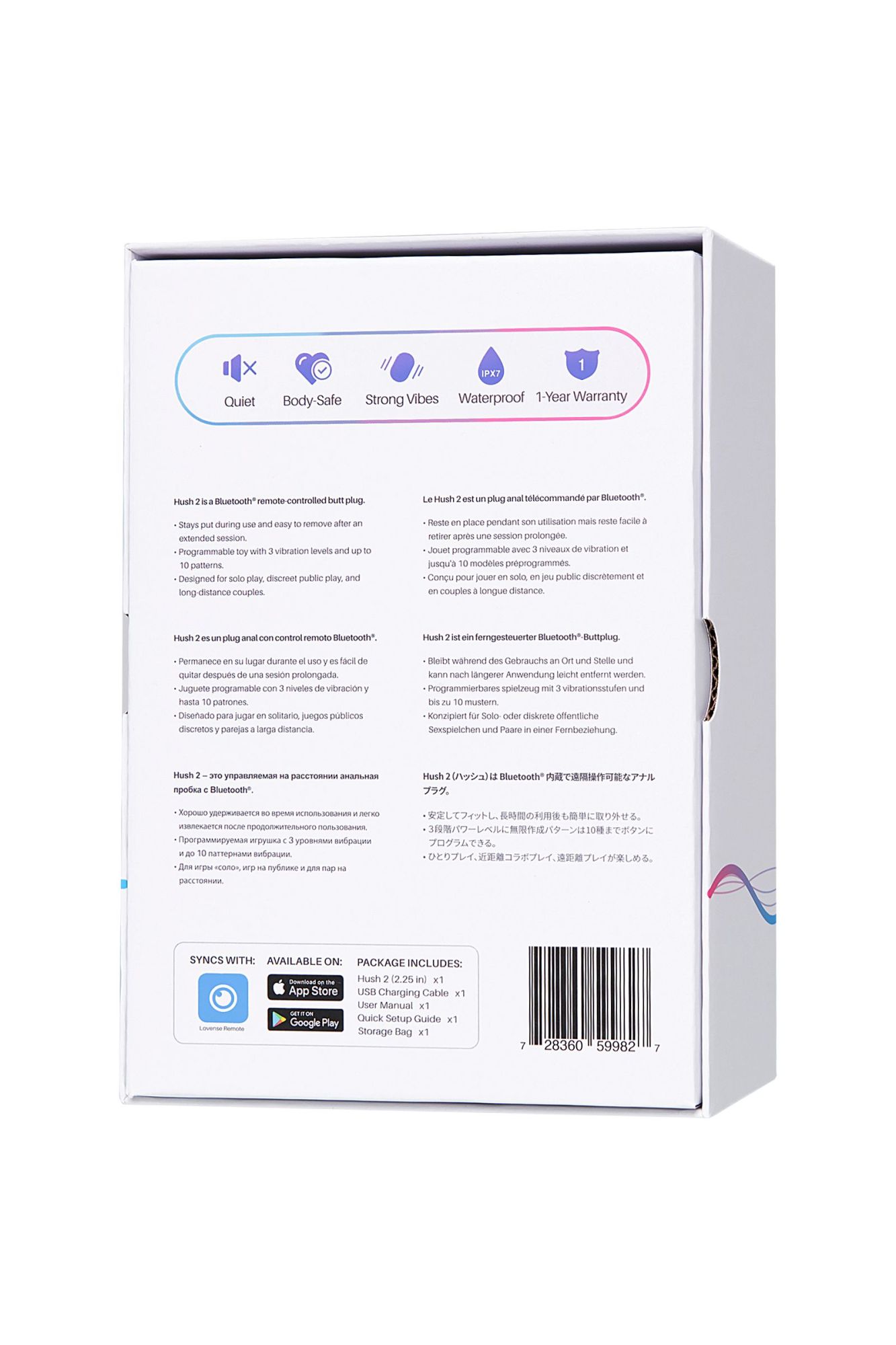Lovense Hush 2 – это мощный, технологичный и безопасный вибратор с гибкими настройками. Он подойдет тем, кто ценит качество, долгую работу и возможность дистанционного управления.