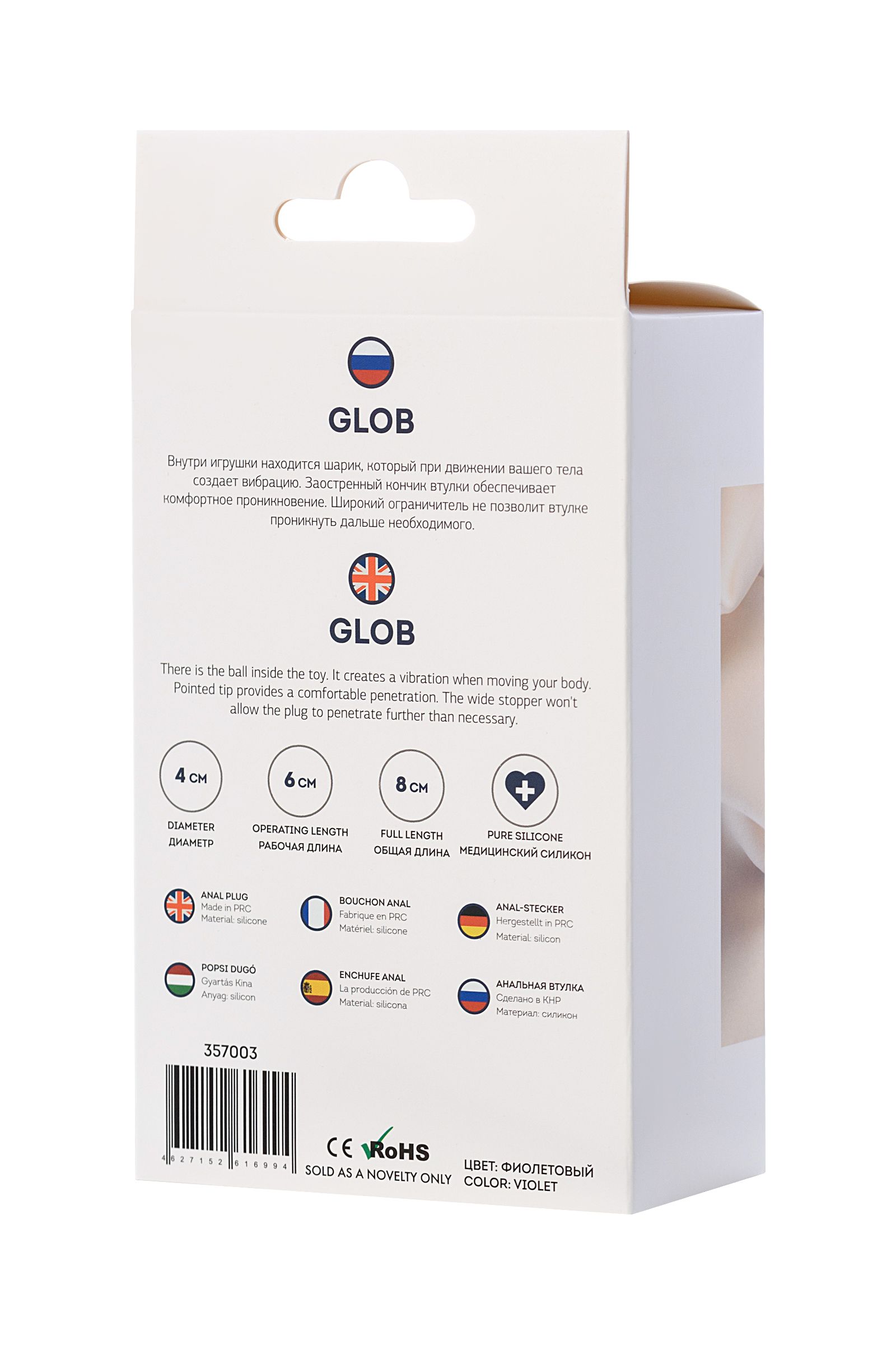 Glob Внутри игрушки находится шарик, который при движении вашего тела создает вибрацию. Заостренный кончик втулки обеспечивает комфортное проникновение. Широкий ограничитель не позволит втулке проникнуть дальше необходимого.