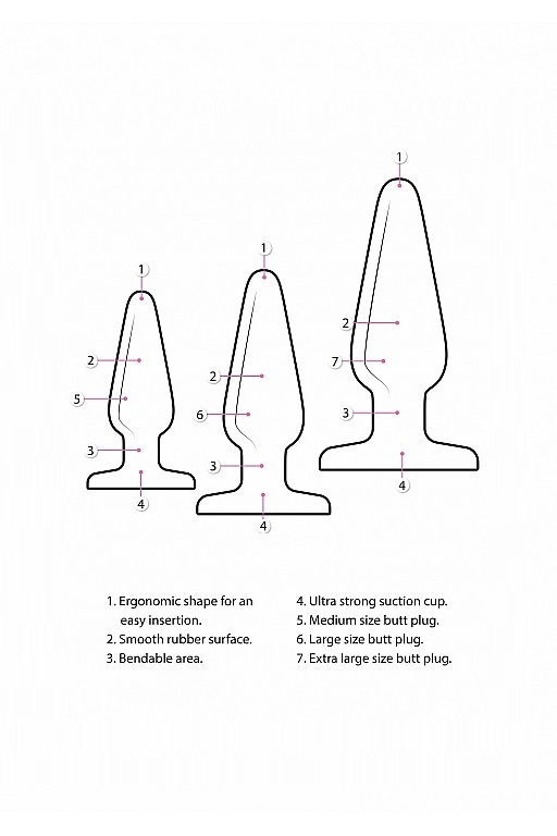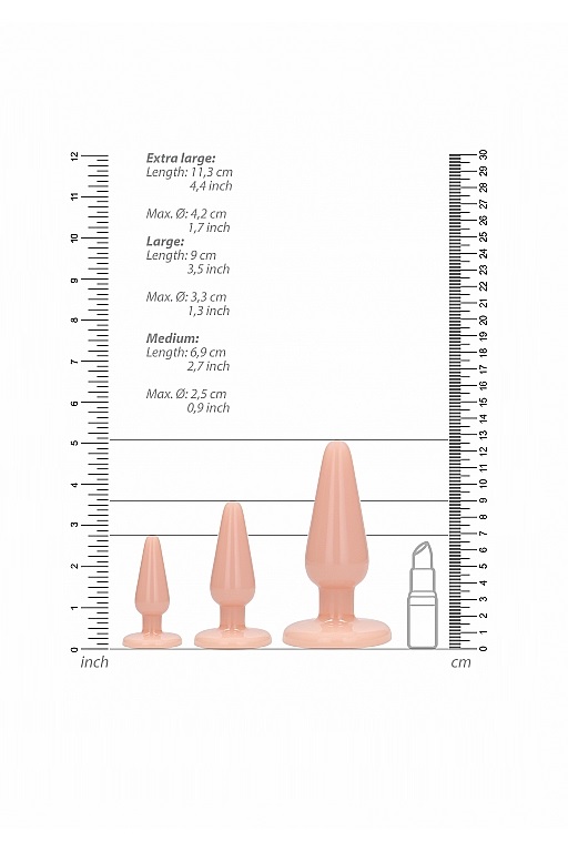 Anal Trainers Kit - набор из трех классических анальных пробок разного размера. Округлый кончик и конусообразная форма способствуют более комфортному проникновению и стимуляции. Широкое основание уберегает пробку от проваливания внутрь прямой кишки. А с помощью ультрасильной присоски у основания игрушка может быть закреплена на горизонтальной или вертикальной поверхности.