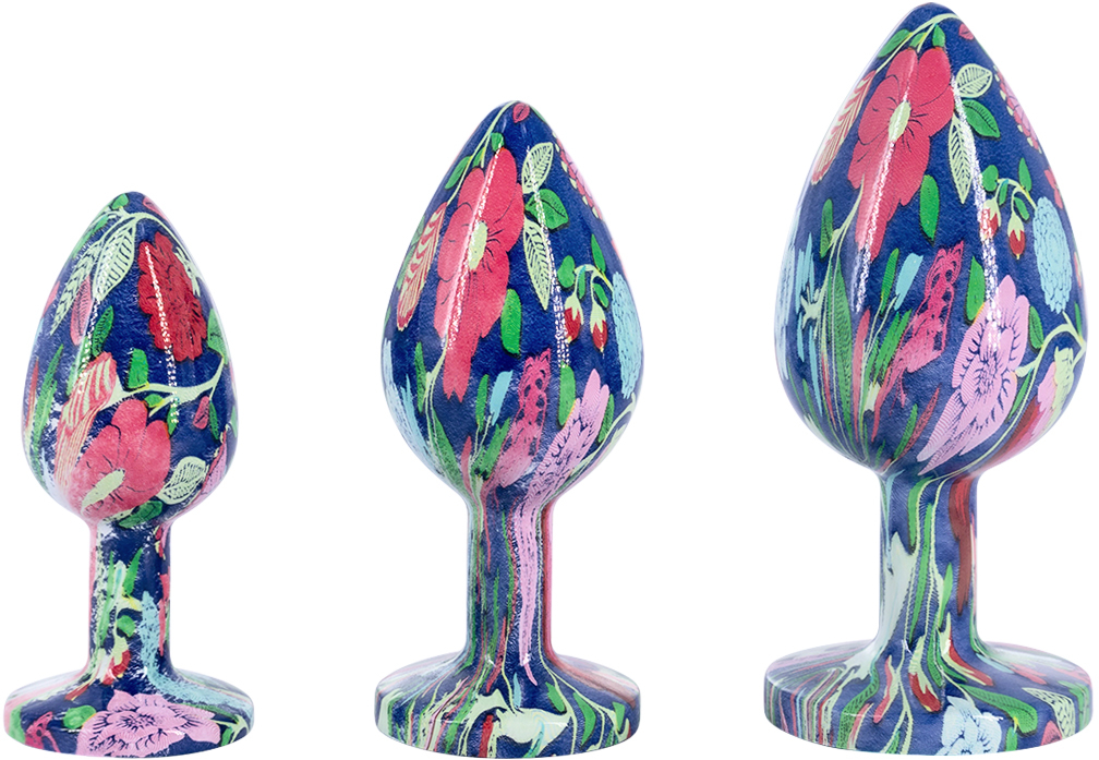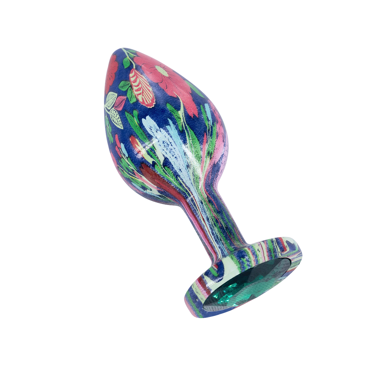 Эмалированная алюминивая анальная пробка с цветочным узором и кристаллом – это декоративное украшение, имеющее проникающую анальную часть и имитацию драгоценного камня круглой формы в основании. Идеально подходит для украшения тела, сужения влагалища, подготовки к анальному сексу.