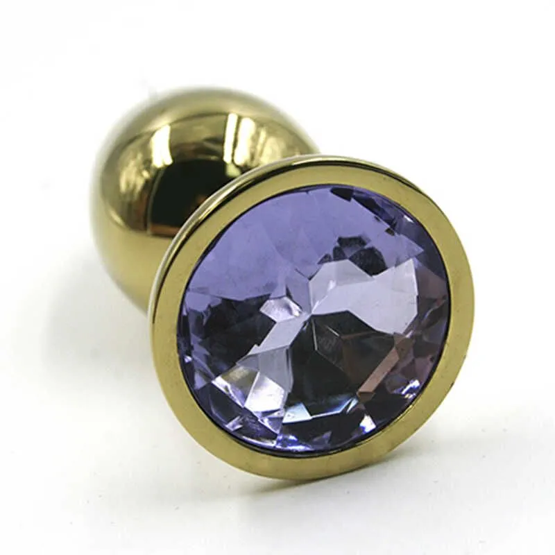 Золотая анальная пробка со светло-фиолетовый кристаллом Small