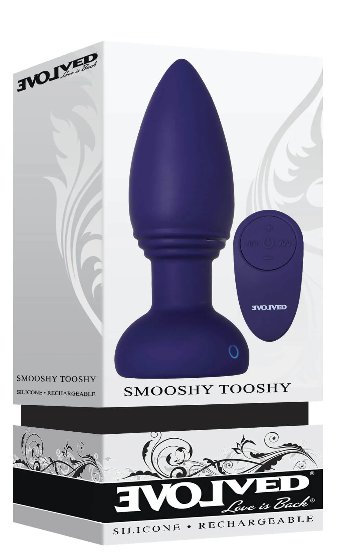 SMOOSHY TOOSHY от Evolved - это пробка в фиолетовом цвете с пультом дистанционного управления. Обладает мощной вибрацией, подсветкой и уникальным материалом.