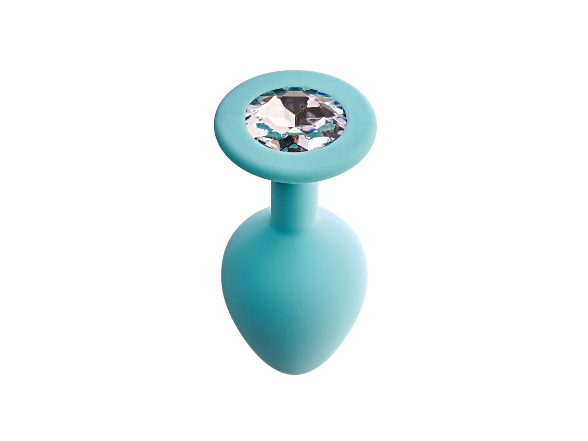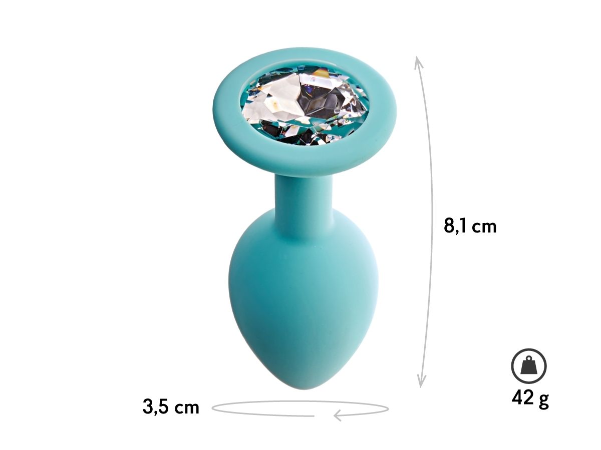 —Анальная пробка с кристаллом Gamma М, аквамарин + белый кристалл