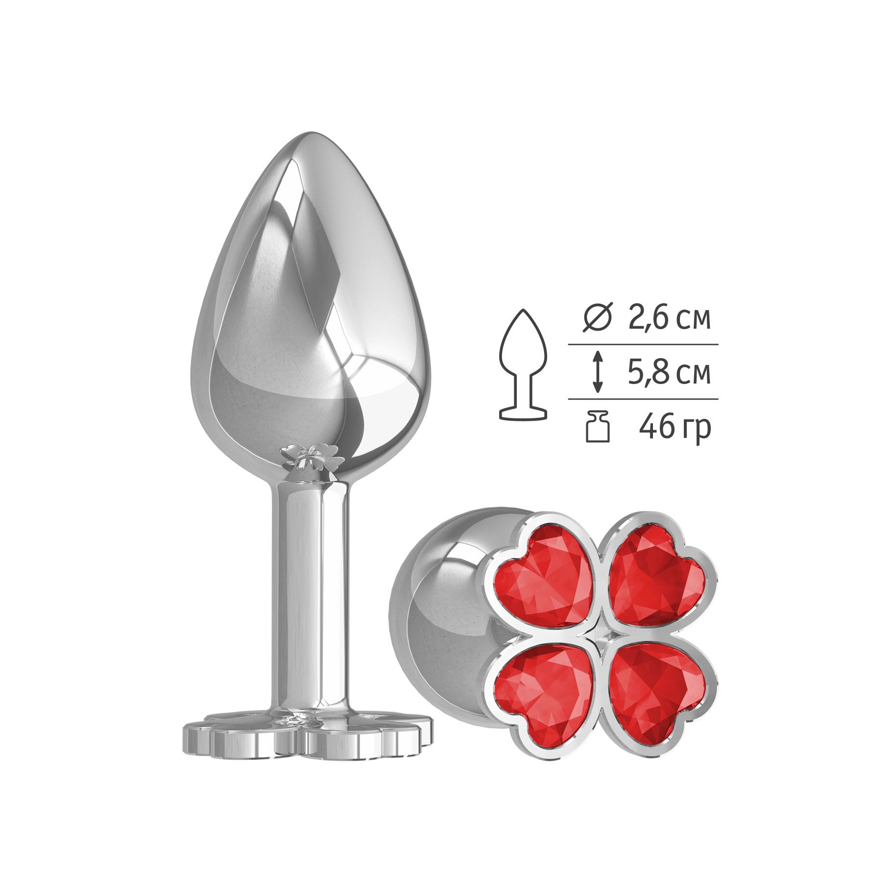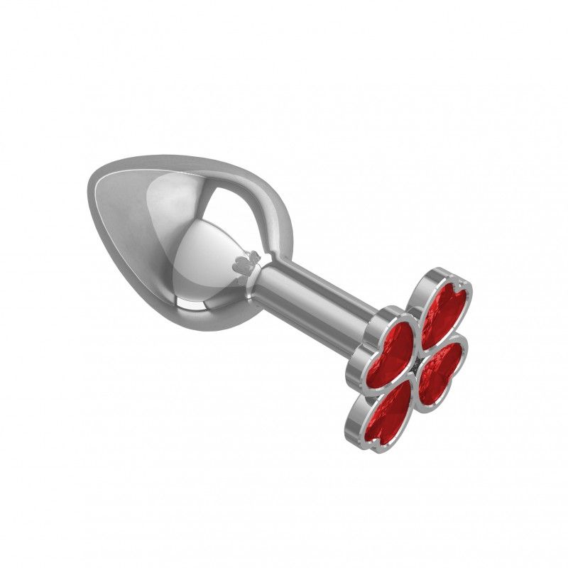 Анальная втулка Silver с красным кристаллом "Клевер"