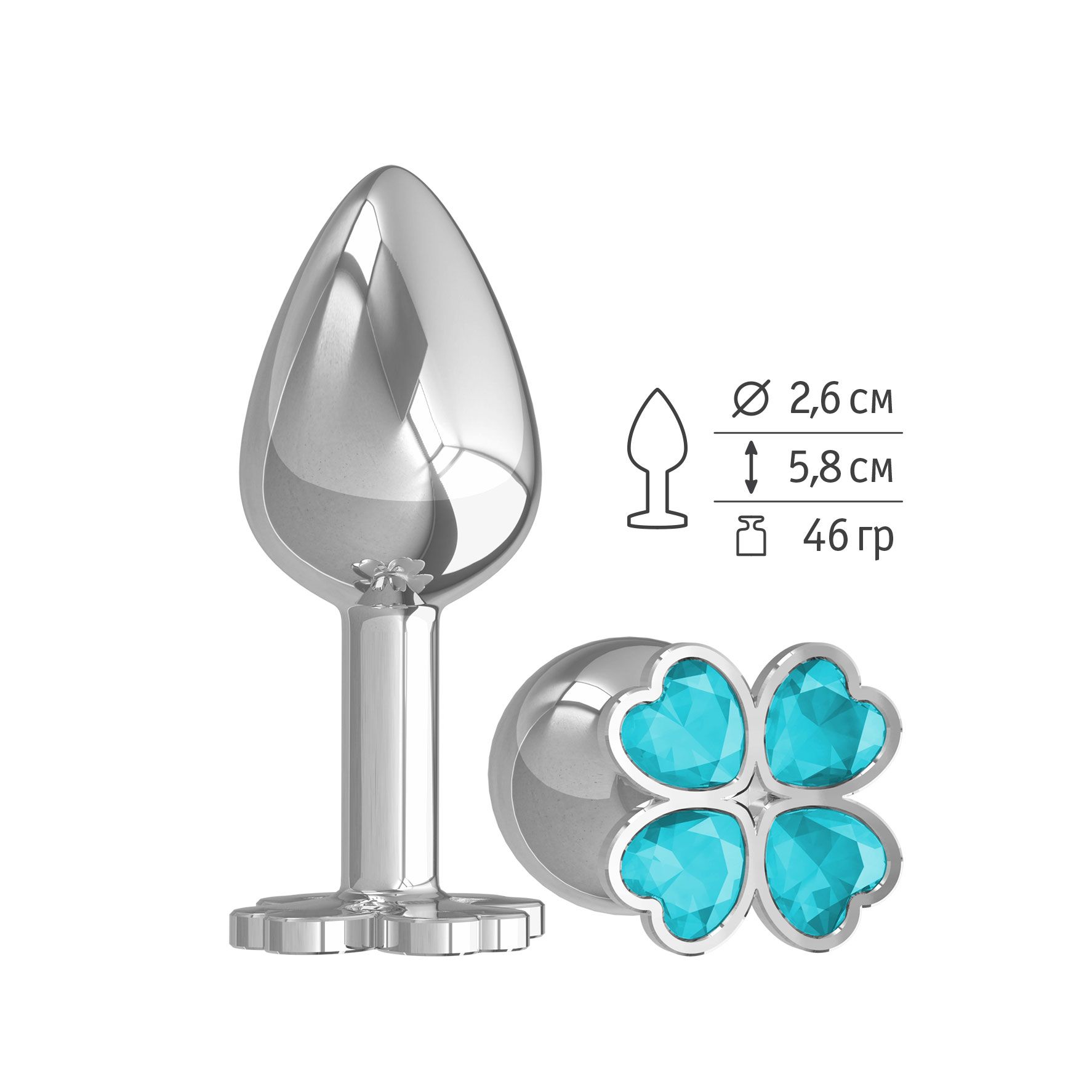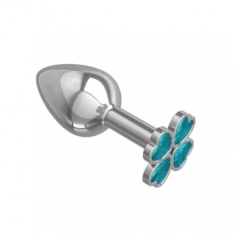Анальная втулка Silver с голубым кристаллом "Клевер"
