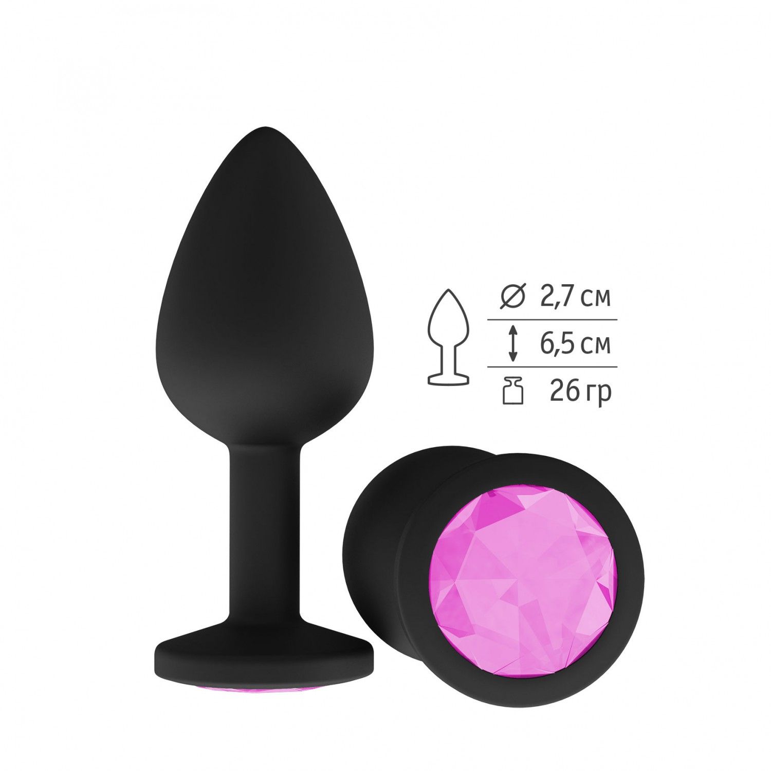 Пробка силиконовая черная с розовым кристаллом