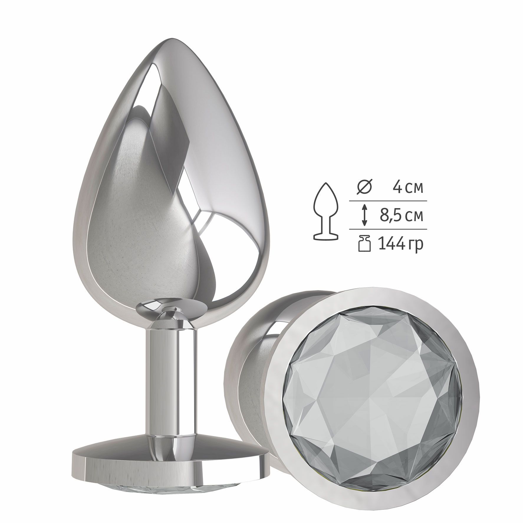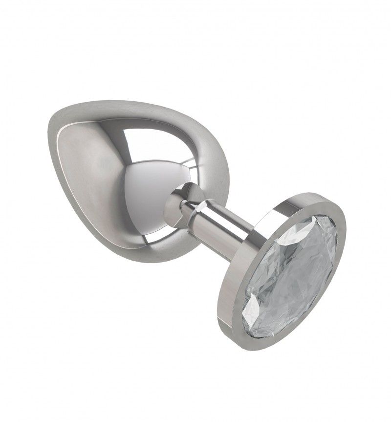 Анальная втулка Silver большая с прозрачным кристаллом