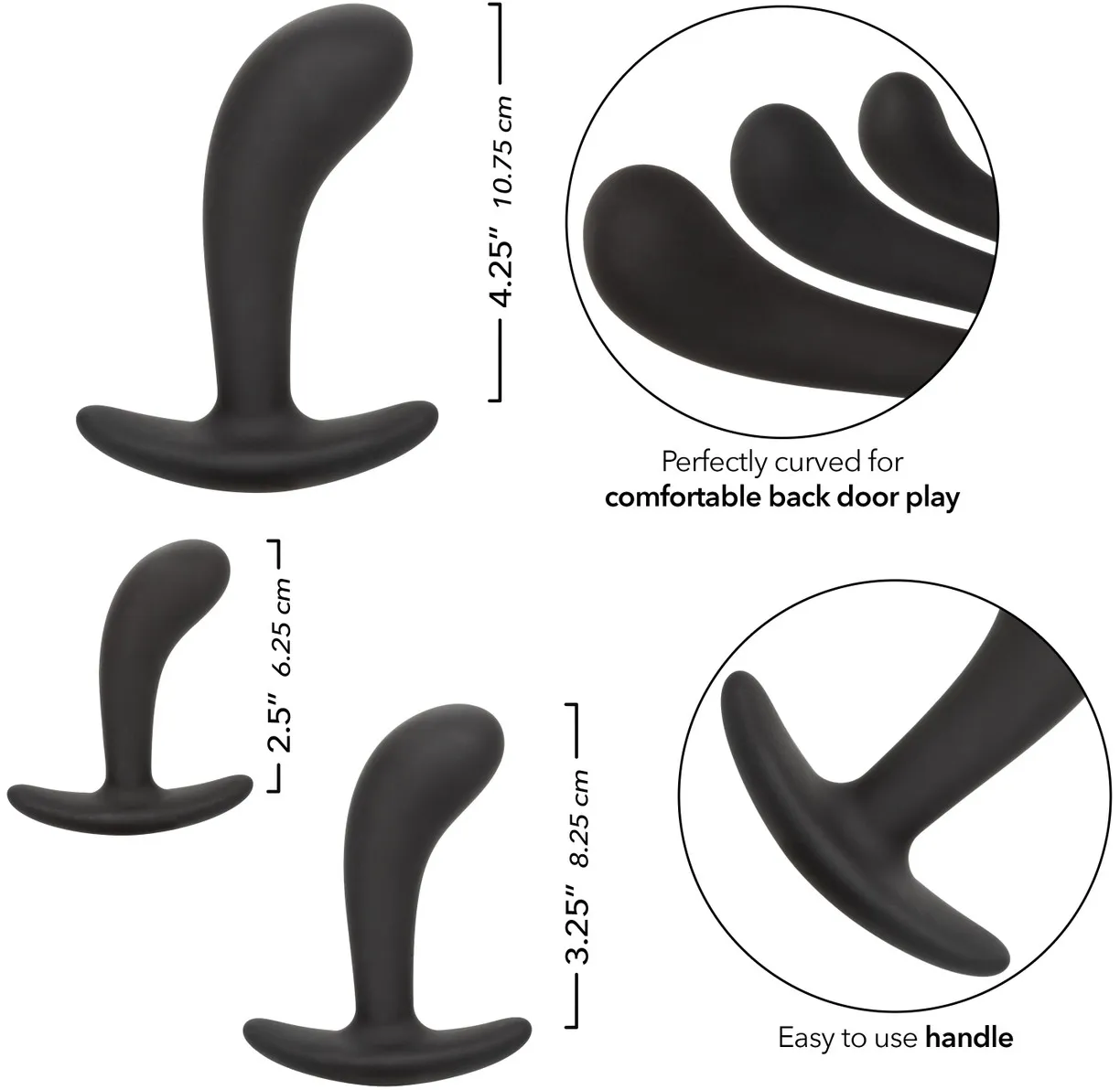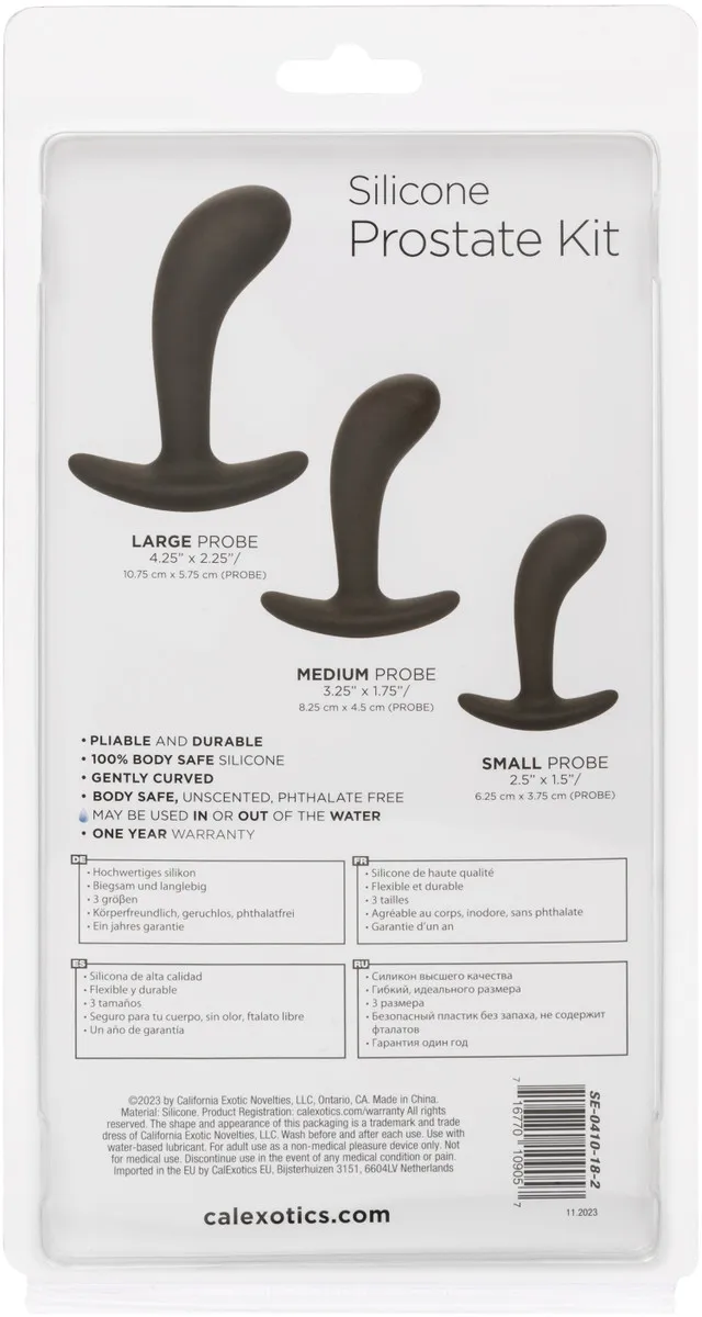 Silicone Prostate Kit - это замечательный набор для начинающих, включающий в себя анальные пробки разных размеров. Идеально подойдет для массажа простаты, для тренировки сфинктера и стимуляции нервных окончаний анального прохода.