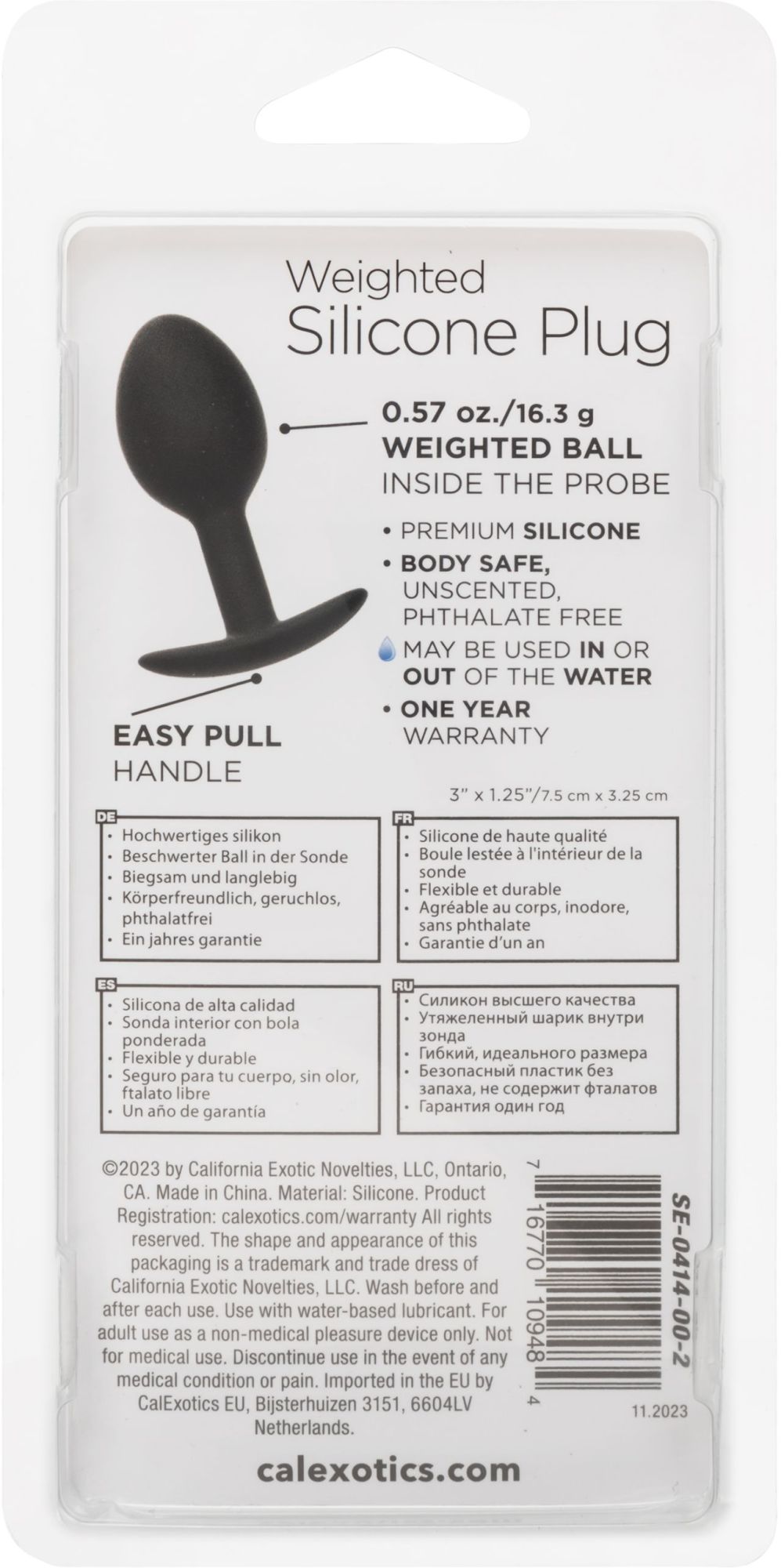 The Weighted Silicone Plug- это утяжеленная анальная пробка. Внутри расположен шарик, который создает смещенный центр тяжести. Изготовлена пробка из гладкого высококачественного силикона. Идеально подойдет для тренировки сфинктера и стимуляции нервных окончаний анального прохода. Имеет удобный ограничитель. Подходит для ношения.
