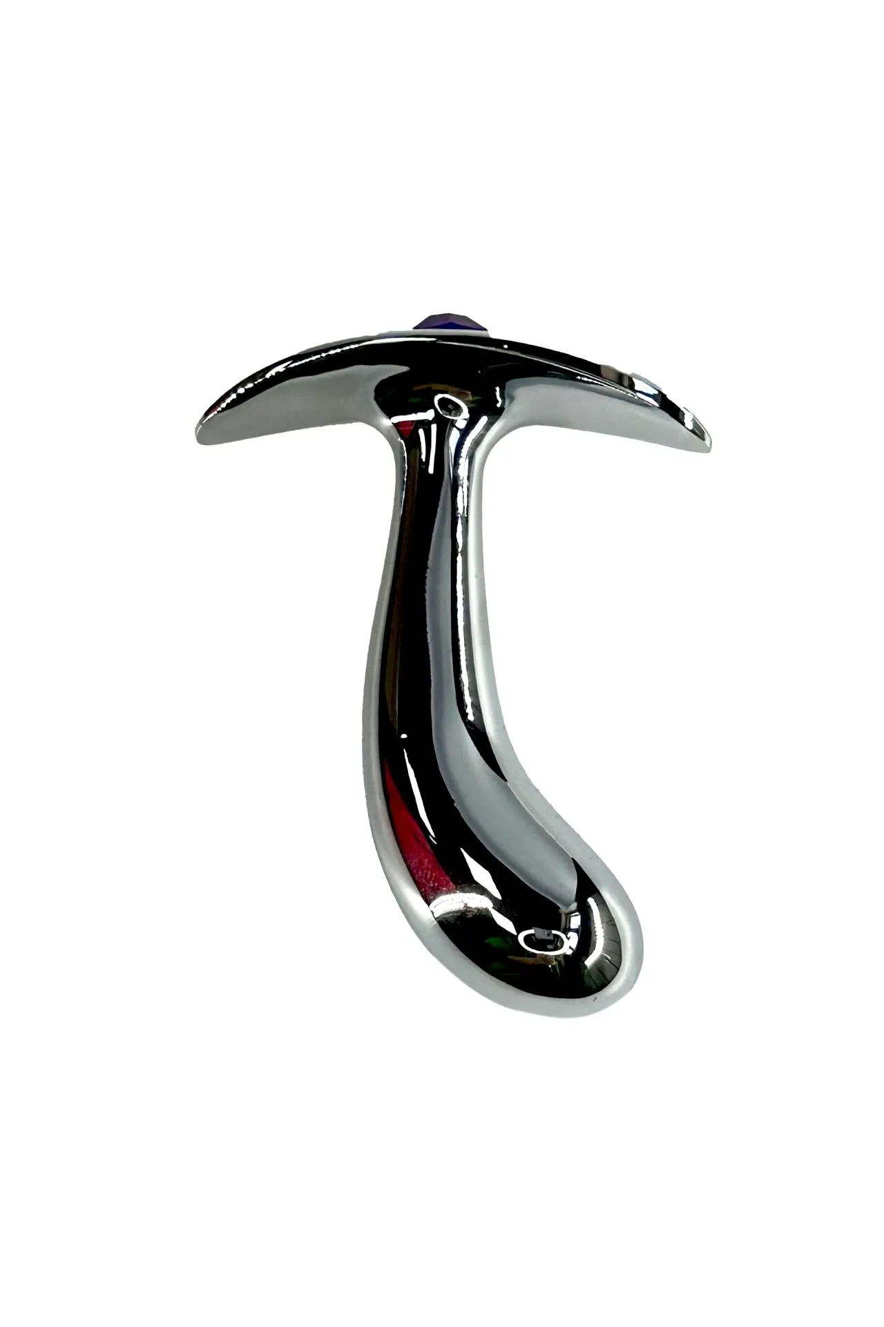 Анальная пробка с маленьким фиолетовым кристаллом (стразом) – это декоративное украшение, имеющее проникающую анальную часть и анатомически изогнутое основание, что позволяет носить пробку внутри тела и использовать во время полового акта. Идеально подходит для украшения тела, сужения влагалища, подготовки к анальному сексу.