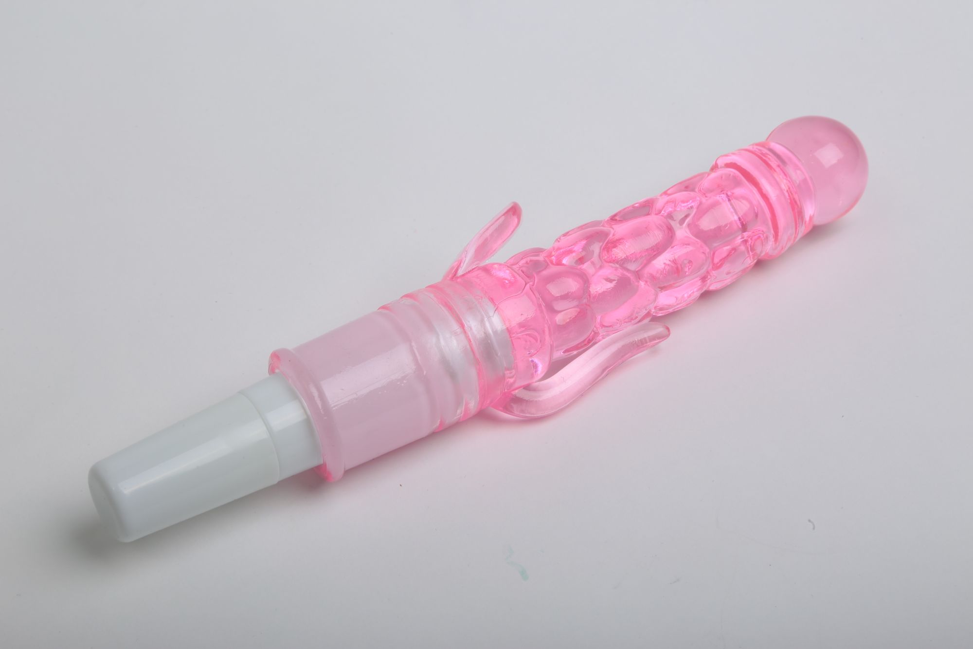 Вибратор розового цвета с двумя небольшими отростками. Изготовлен из TPR. Ребристая поверхность и ярко выраженная головка добавляют еще больше удовольствия. Имеет 1 скорость вибрации, которая удобно и плавно регулируются на ручке. Характеристики: общая длина - 21 см, рабочая длина - 10 см, максимальный диаметр — 2,7 см, длина отростков — 2 и 4 см, диаметр отростков — 0,8 см. Работает от 1АА батарейки (в комплект не входит). Упаковка: картонная коробка с принтом.