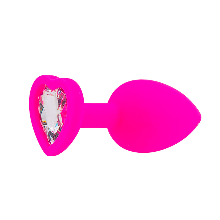 Шелковистая силиконовая анальная пробка от PinkRabbit в нашем фирменном розовом цвете с блистающим прозрачным кристаллом в виде сердечка – прелестная игрушка для разнообразия любовных игр и ласк.