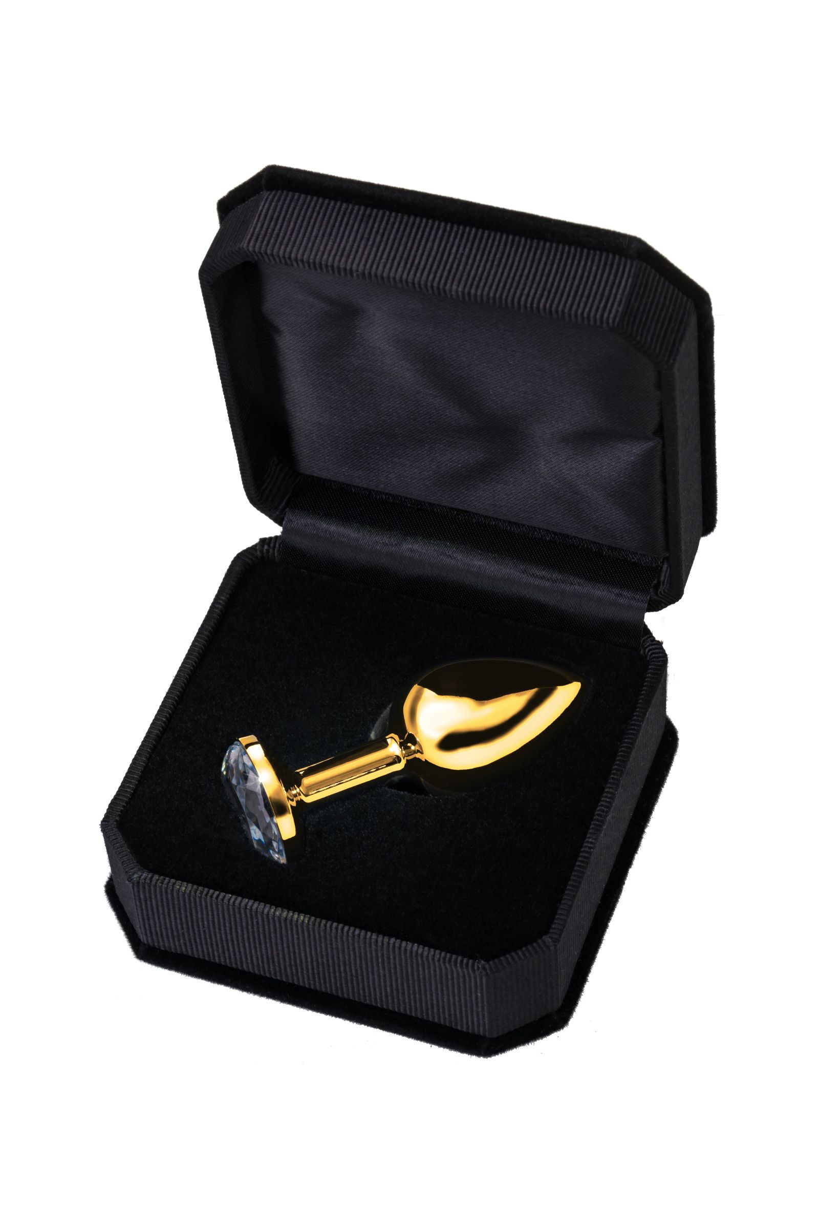 Анальная втулка Metal by TOYFA, металл, золотая, с белым кристаллом, 7,5 см, Ø 3 см, 145 г