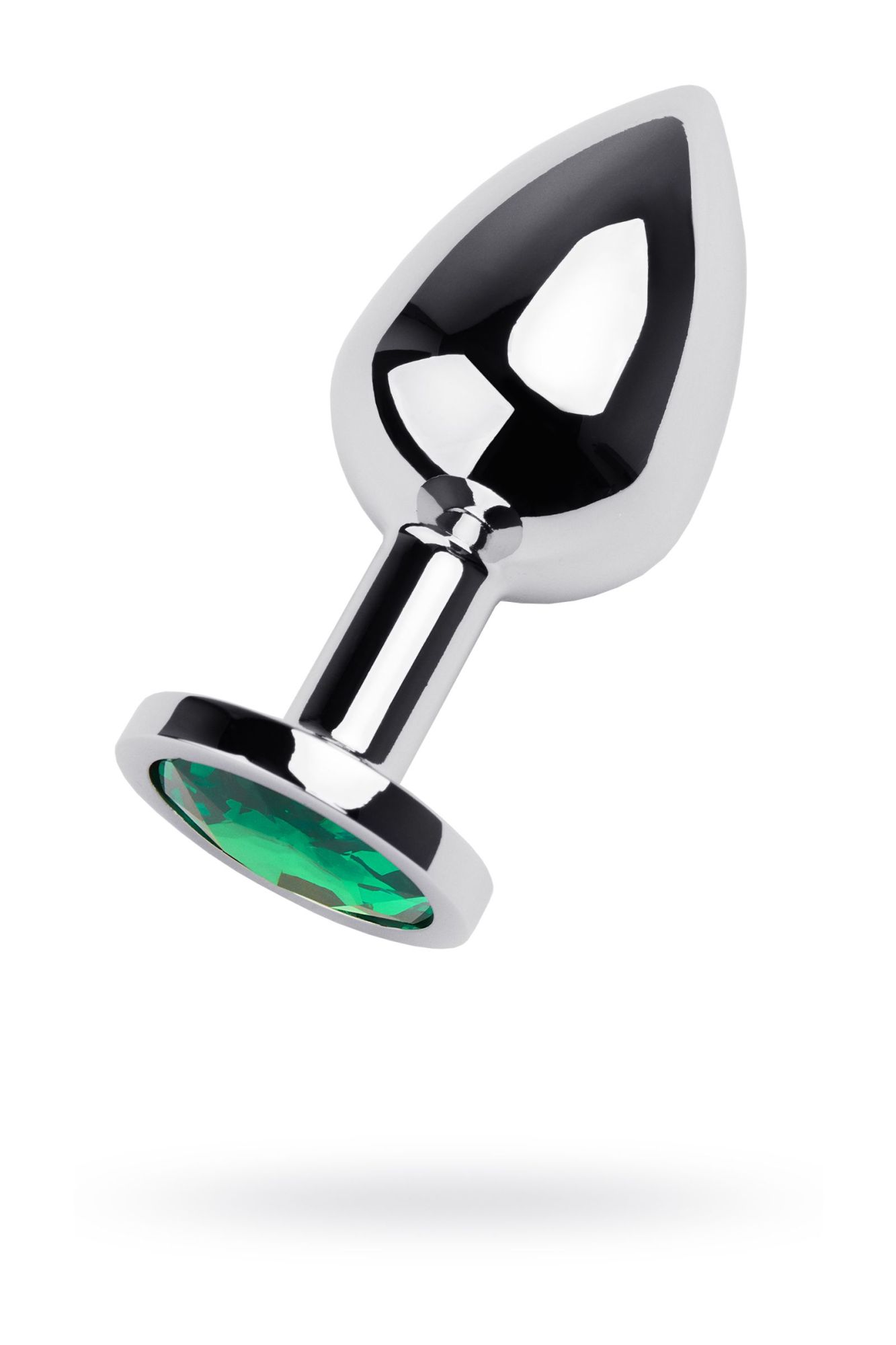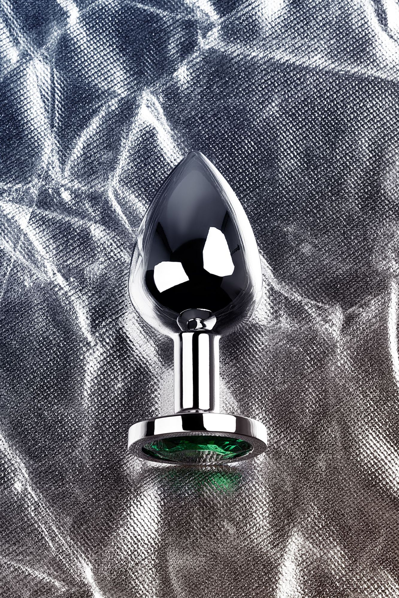 —Анальная втулка Metal by TOYFA, металл, серебряная, с зеленым кристаллом, 8 см, Ø 3,4 см, 85 г