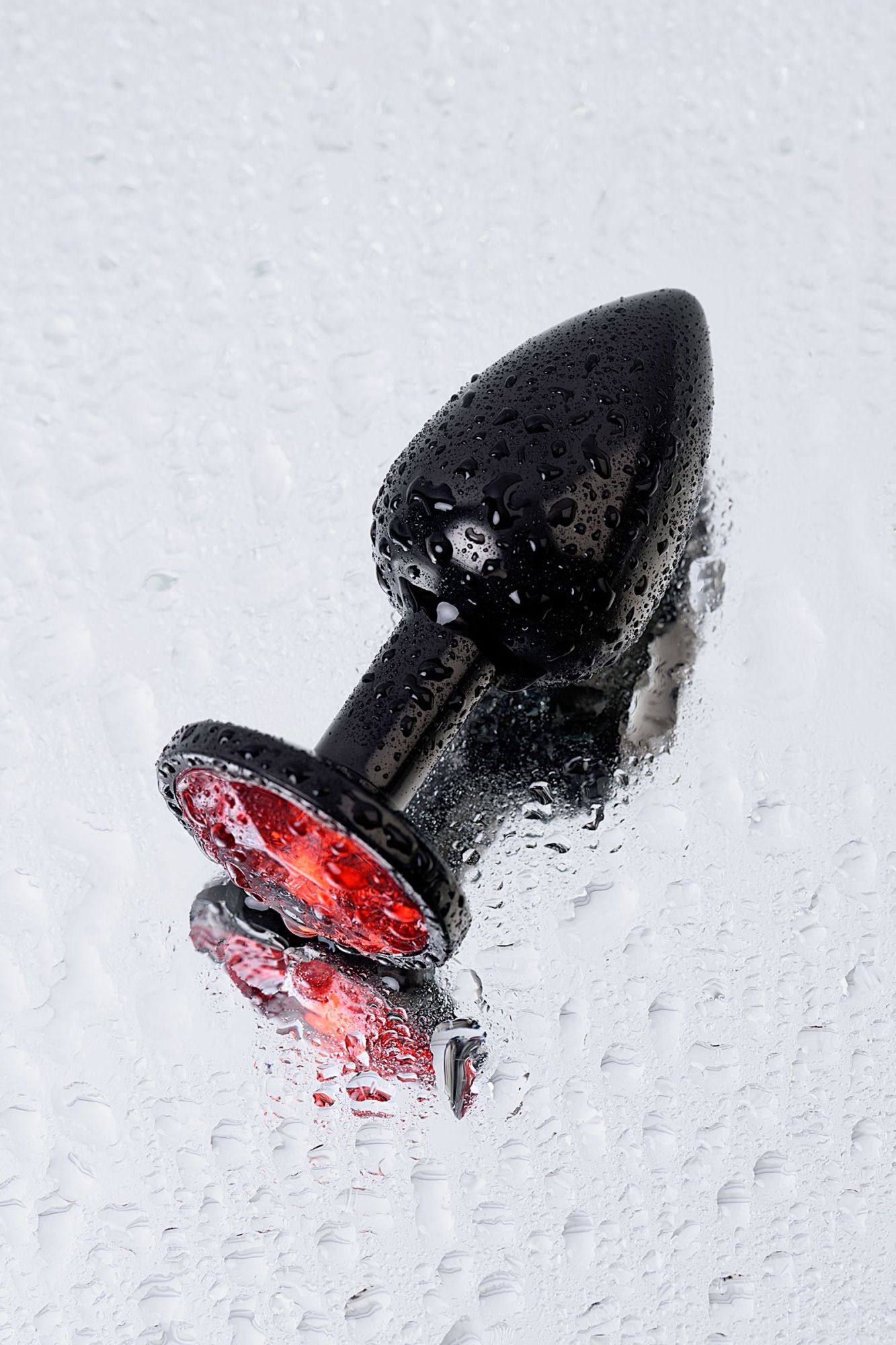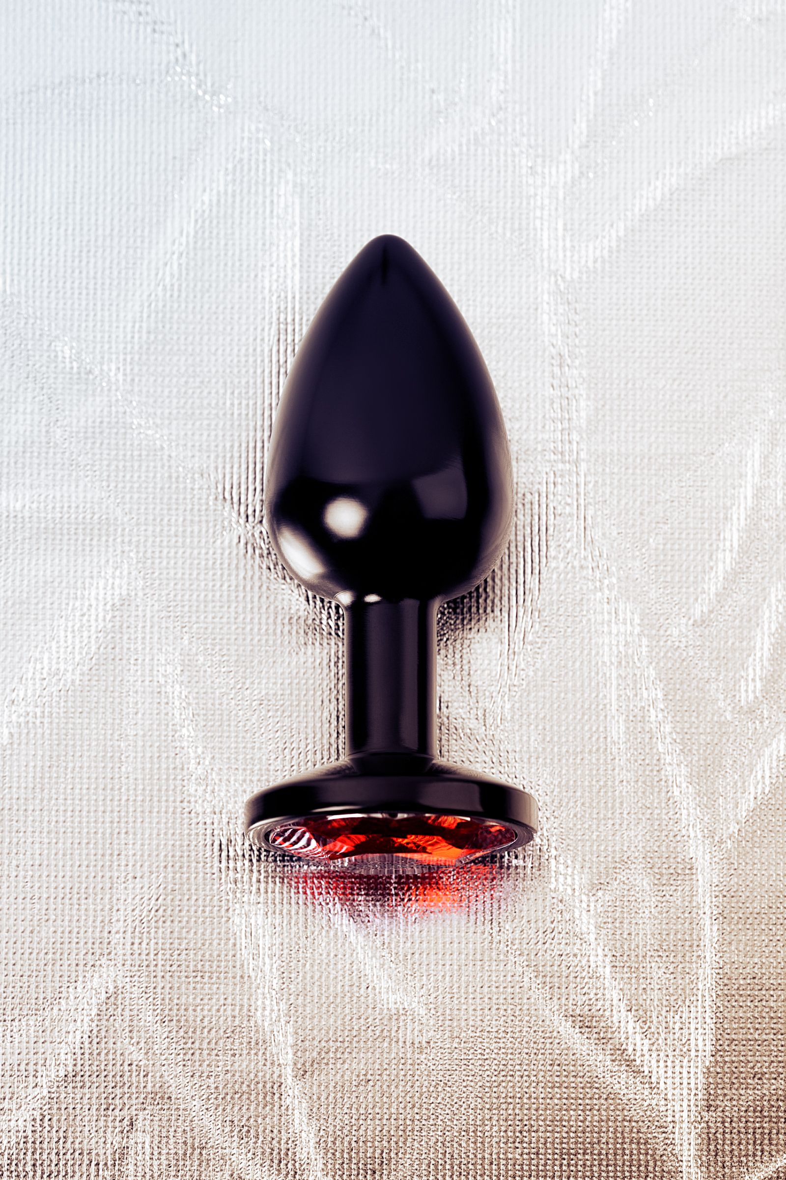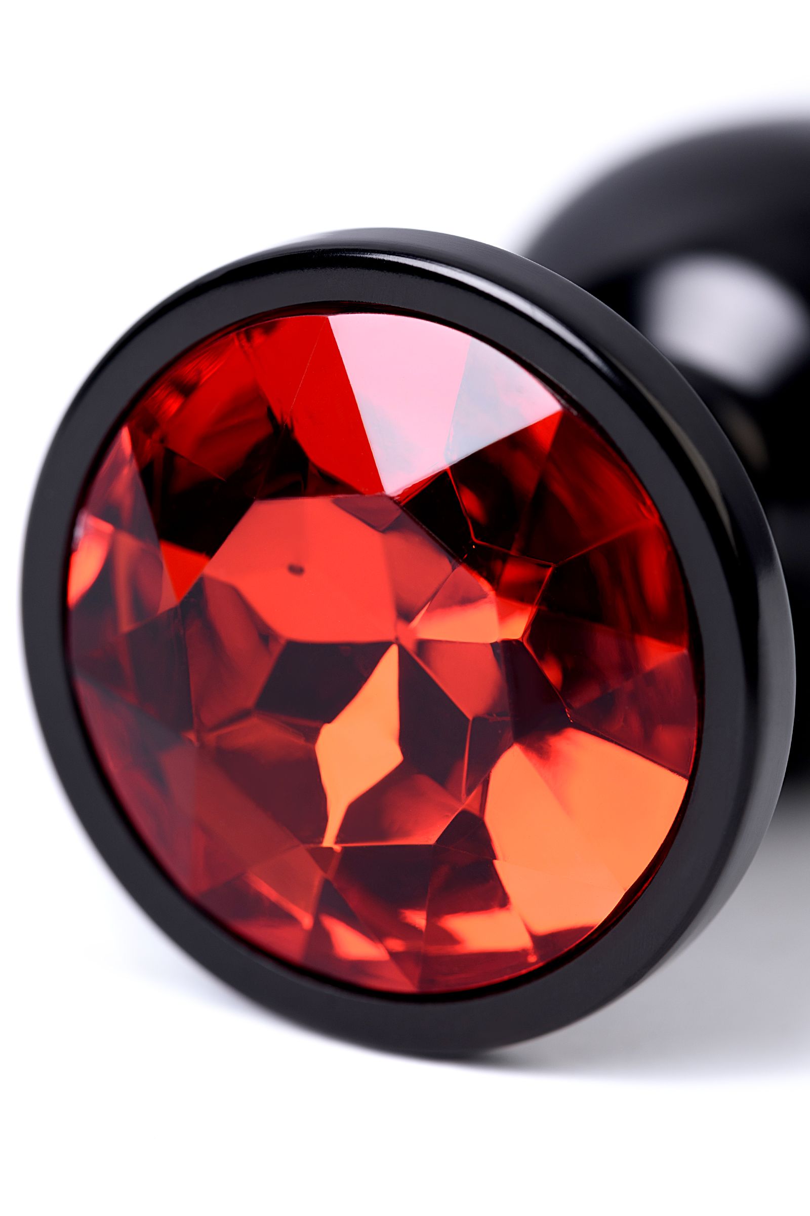 —Анальная втулка, Metal by TOYFA, металл, черная, с красным кристаллом, 7,2 см, Ø2,8 см, 50 г