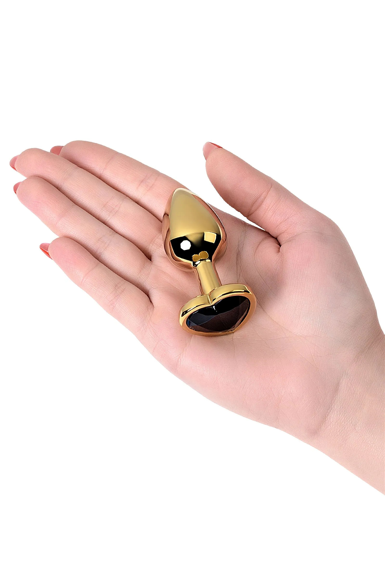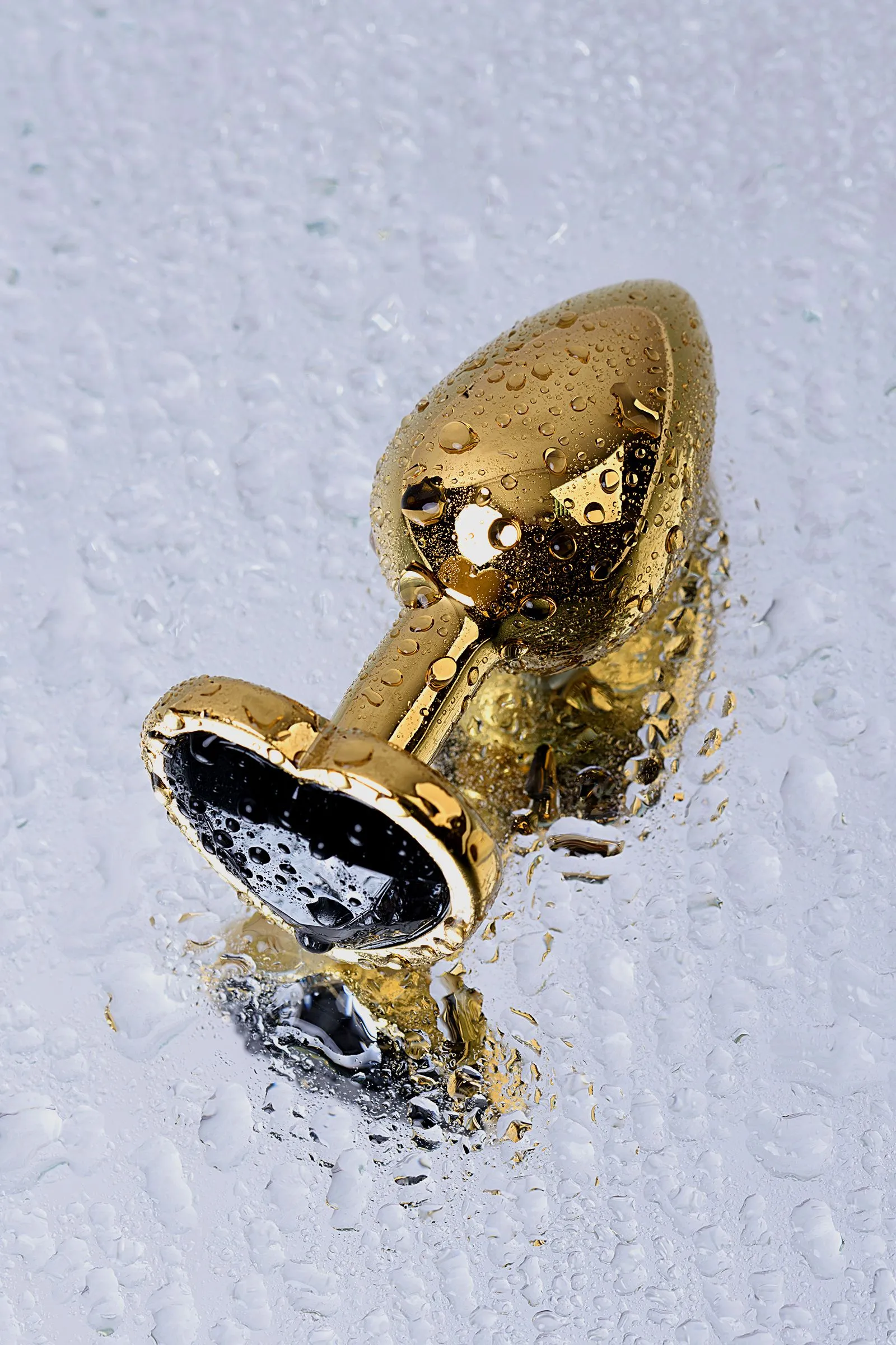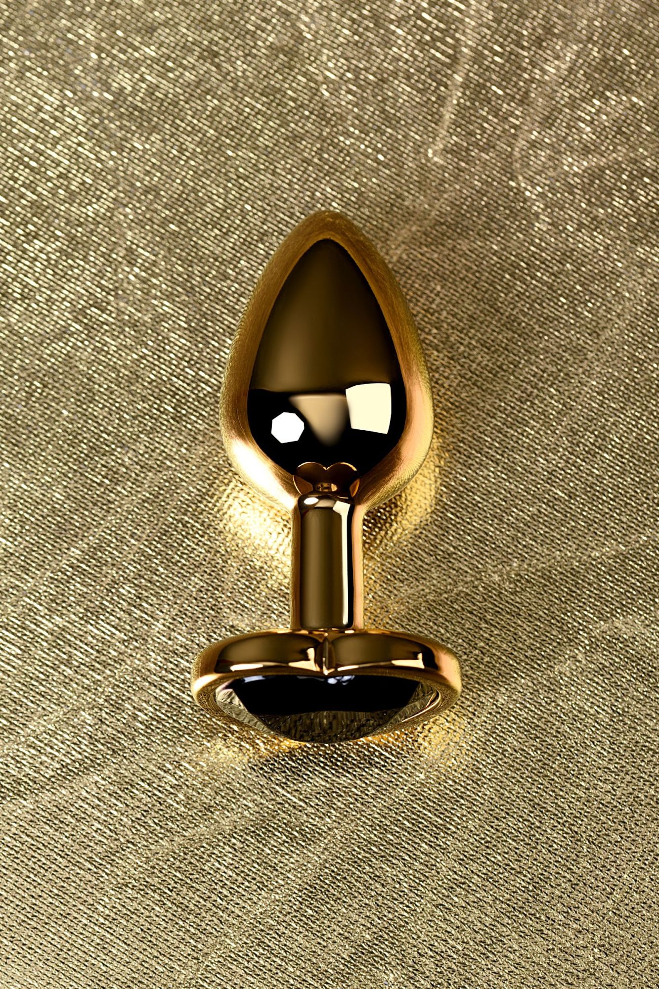 Анальная втулка Metal by TOYFA, металл, золотая, с чёрным кристаллом, 7 см, Ø 2,7 см, 50 г