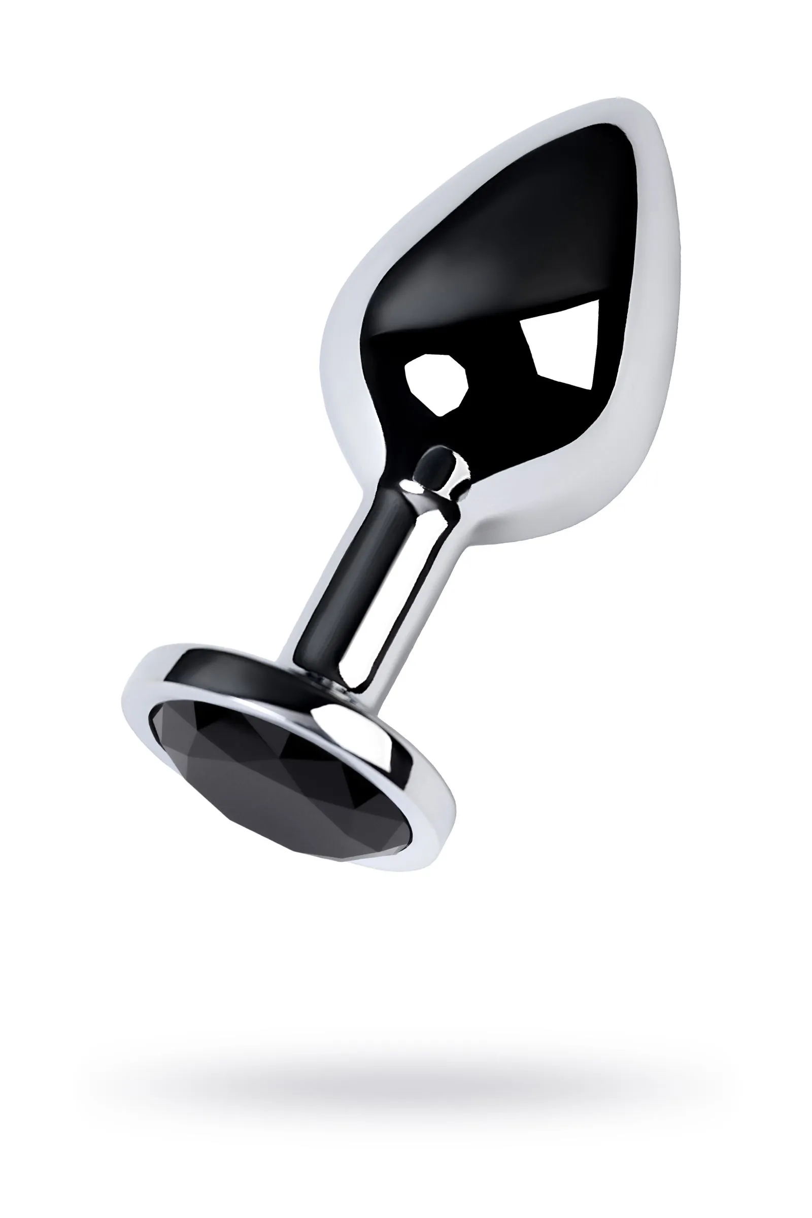 —Анальная втулка Metal by TOYFA, металл, серебряная, с чёрным кристаллом, 8 см, Ø 3,4 см, 85 г