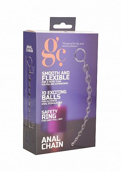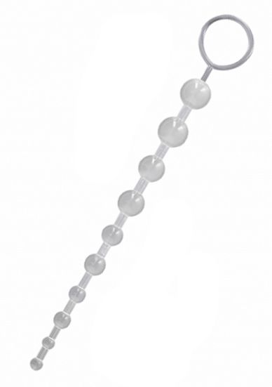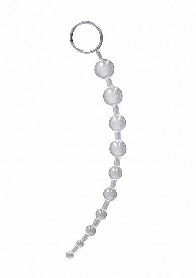 Эта гибкая прозрачная анальная цепочка может доставить вас в анальный рай! Состоит не менее чем из 10 возбуждающих и стимулирующих «шариков», от нежного 8 мм до более ощущаемого в 22 мм диаметром. Общая длина проникновения впечатляет и составляет 25 см. На конце есть ограничительное кольцо для легкого извлечения. Изготовлена из пластичного и безопасного TPE - термопластичный эластомер.
