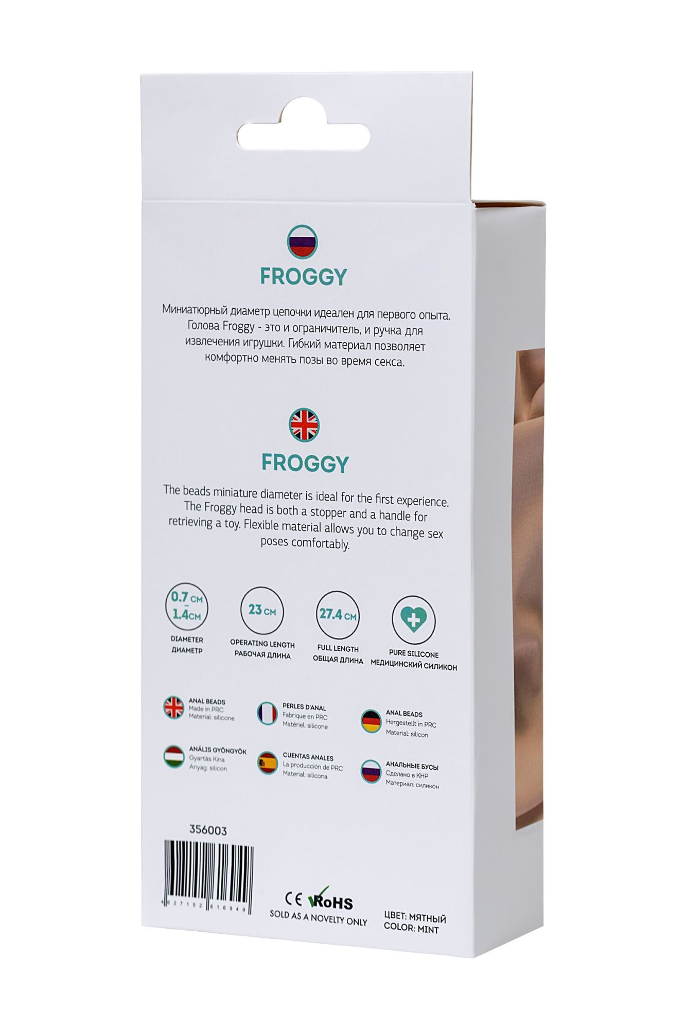 Froggy Миниатюрный диаметр цепочки идеален для первого опыта. Голова Froggy — это и ограничитель, и ручка для извлечения игрушки. Гибкий материал позволяет комфортно менять позы во время секса.