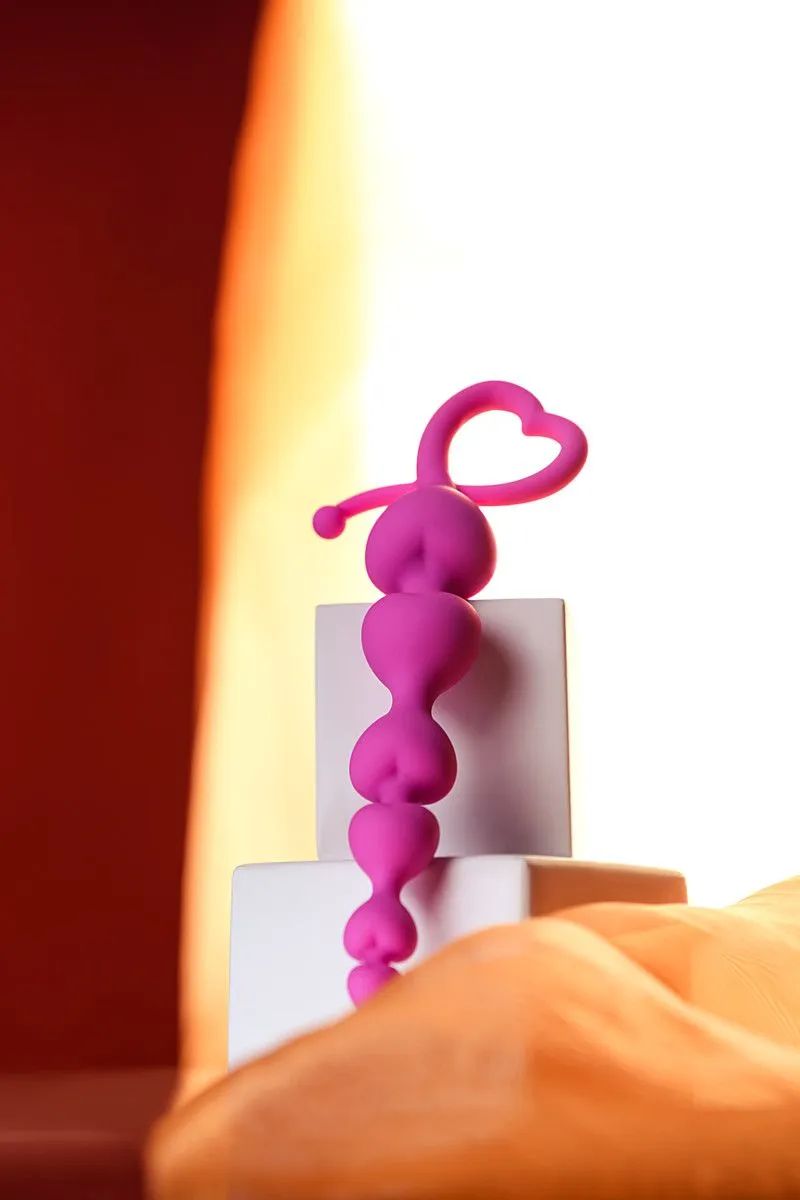 Специальная форма из постепенно увеличивающихся в диаметре сердечек обеспечивает легкое и комфортное введение. Размер сердечек подойдет новичкам и опытным любителям. Легко извлекается с помощью петельки-сердца. Гибкий материал позволяет комфортно менять позы во время секса.