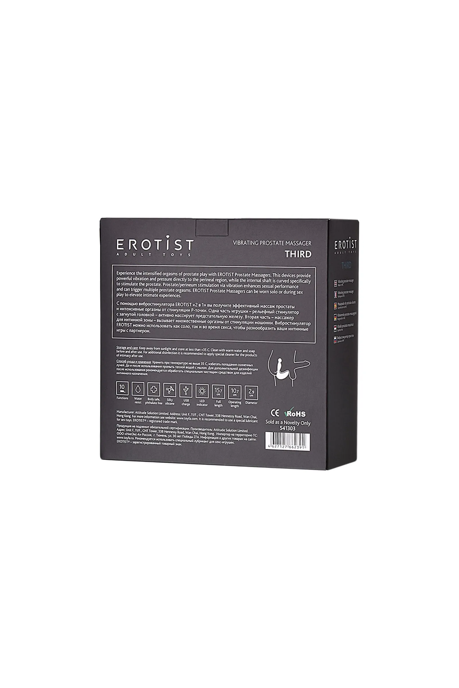 С помощью вибростимулятора EROTIST THIRD вы получите эффективный массаж простаты и интенсивные оргазмы от стимуляции P-точки. Одна часть игрушки — рельефный стимулятор с загнутой головкой — активно массирует предстательную железу. Вторая часть — массажер для интимной зоны - благодаря стимуляции промежности и мошонки делает оргазм мужчины более ярким. Массажер простаты имеет 2 мощных мотора, вибрация которых спровоцирует сильнейший приток крови к эрогенным зонам. В вибростимуляторе предусмотрено 10 режимов вибрации. Испробуйте каждую из них, найдите идеальную для вас и получайте удовольствие. Снижайте или увеличивайте уровень вибрации с помощью дистанционного пульта управления, который позволит не отвлекаться от процесса. Вибростимулятор EROTIST можно использовать как соло, так и во время секса, чтобы разнообразить ваши интимные игры с партнером.