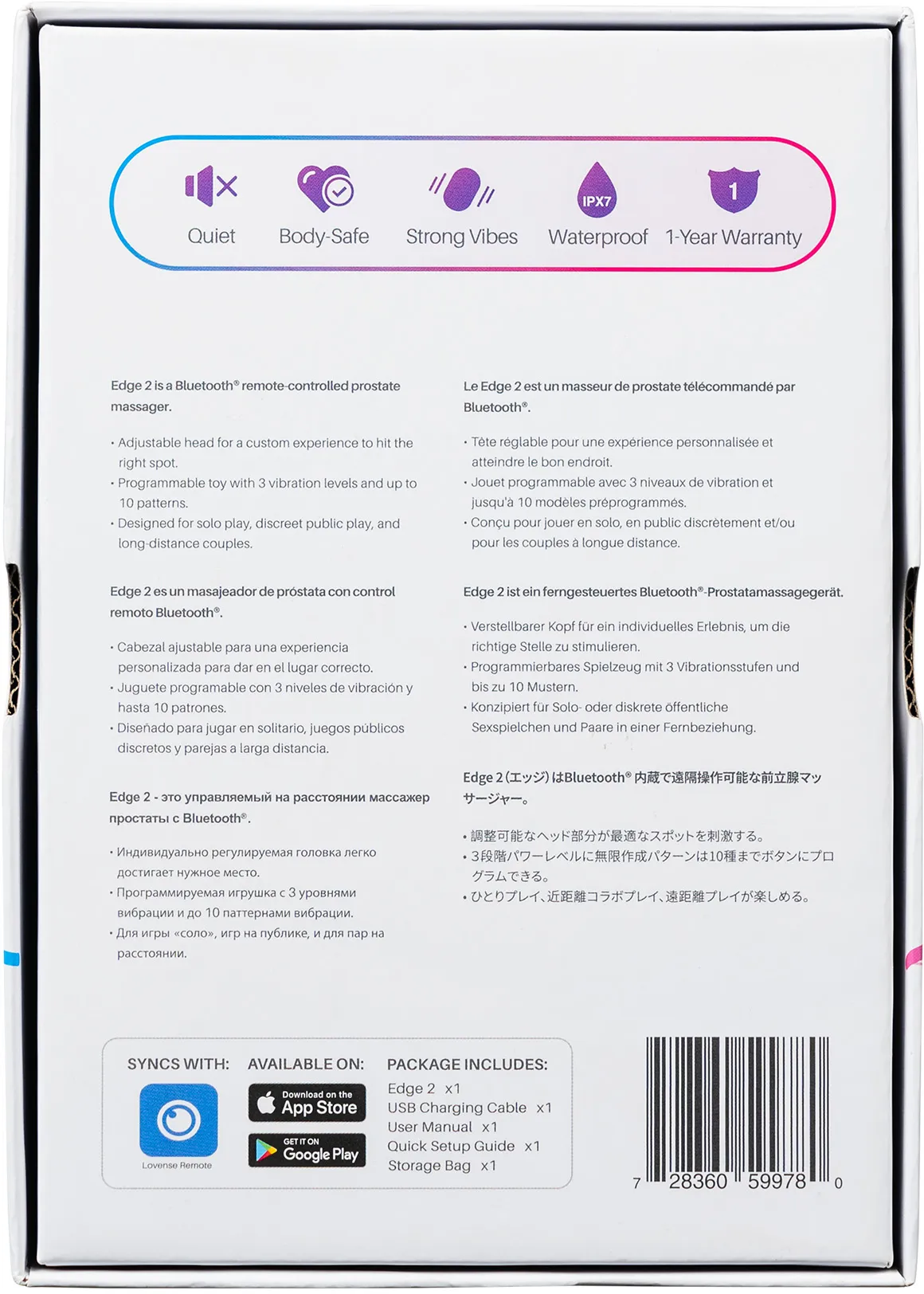 Lovense Edge 2 - отличный выбор для частного использования, как соло, так и игр с партнерами, на любом расстоянии. Игрушка работает с официальным приложением Lovense Remote, позволяющим управлять с телефона партнера из любой точки мира.