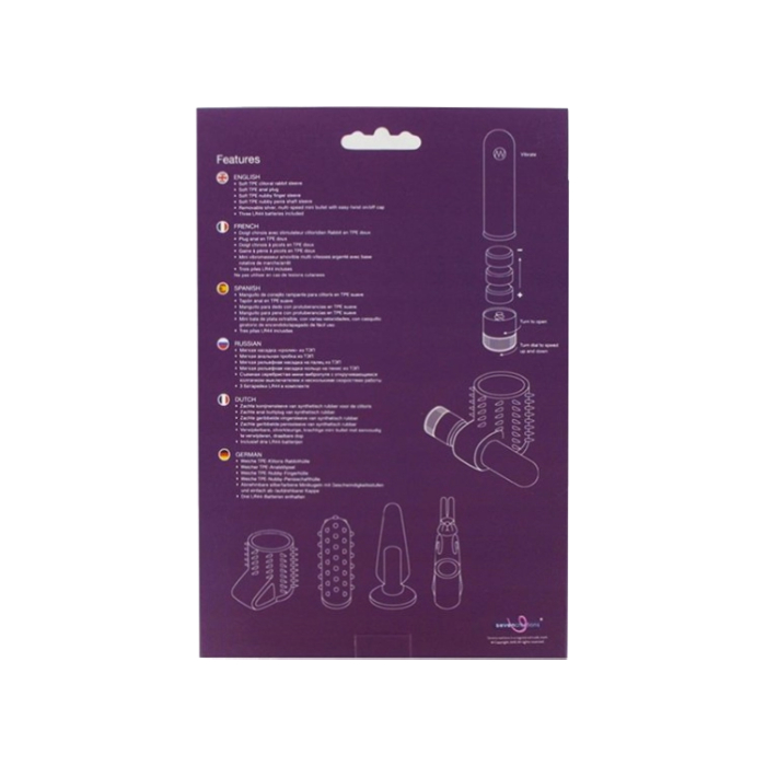 Набор насадок с миниатюрным вибромассажёром для совместных любовных игр. Он также отлично подходит для самостоятельной стимуляции, когда ваш партнёр далеко, но вы скучаете по его ласкам.