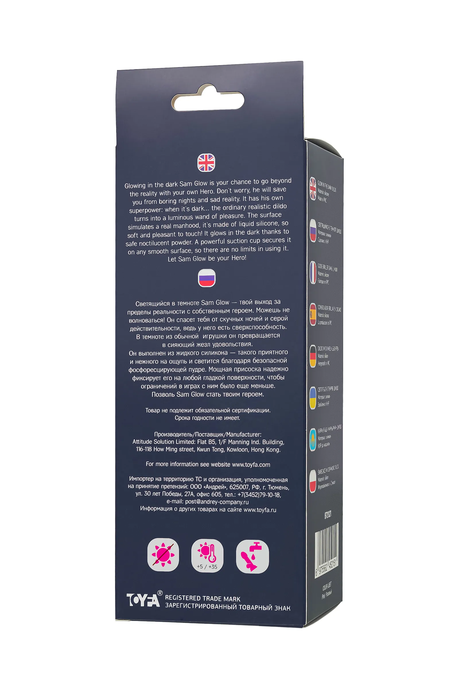 Светящийся в темноте Sam Glow — твой выход за пределы реальности с собственным героем. Можешь не волноваться! Он спасет тебя от скучных ночей и серой действительности, ведь у него есть сверхспособность. В темноте из обычной игрушки он превращается в сияющий жезл удовольствия. Он выполнен из жидкого силикона — такого приятного и нежного на ощупь и светится благодаря безопасной фосфоресцирующей пудре. Мощная присоска надежно фиксирует его на любой гладкой поверхности, чтобы ограничений в играх с ним было еще меньше. Позволь Sam Glow стать твоим героем. Материал - силикон Полностью светится в темноте Общая длина 17 см Водонепроницаемый