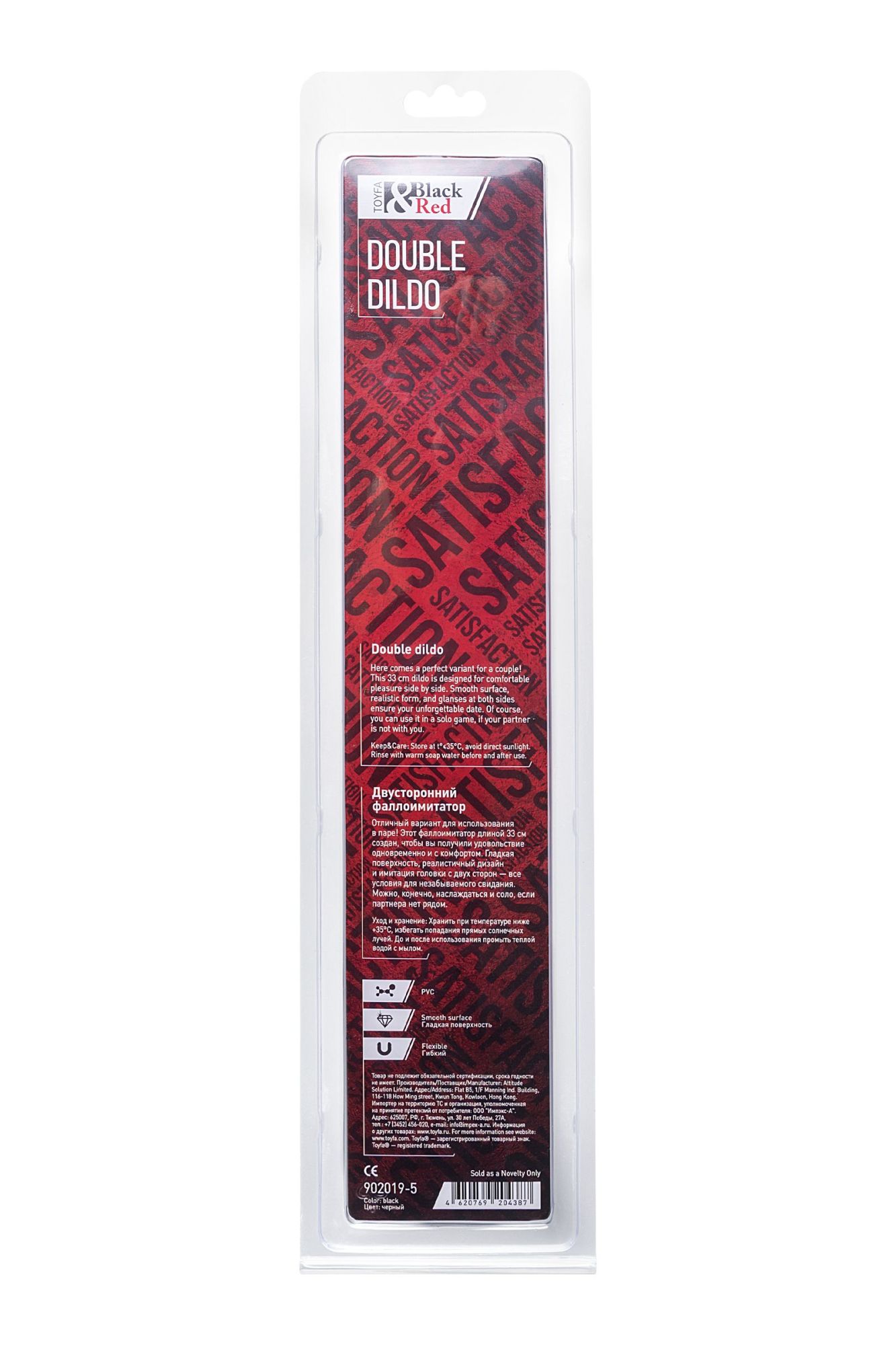 —Двусторонний фаллоимитатор Black & Red by TOYFA, ПВХ, чёрный, 31 см