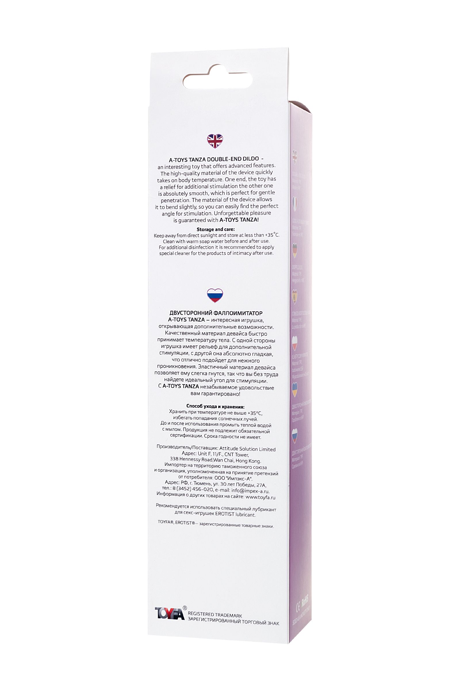 Двусторонний фаллоимитатор A-Toys Tanza – интересная игрушка, открывающая дополнительные возможности. Качественный материал девайса быстро принимает температуру тела. С одной стороны игрушка имеет рельеф для дополнительной стимуляции, с другой она абсолютно гладкая, что отлично подойдет для нежного проникновения. Эластичный материал девайса позволяет ему слегка гнутся, так что вы без труда найдете идеальный угол для стимуляции. С A-Toys Tanza незабываемое удовольствие вам гарантировано! Общая длина: 27,5 см Диаметр: 2,7-3,1 см