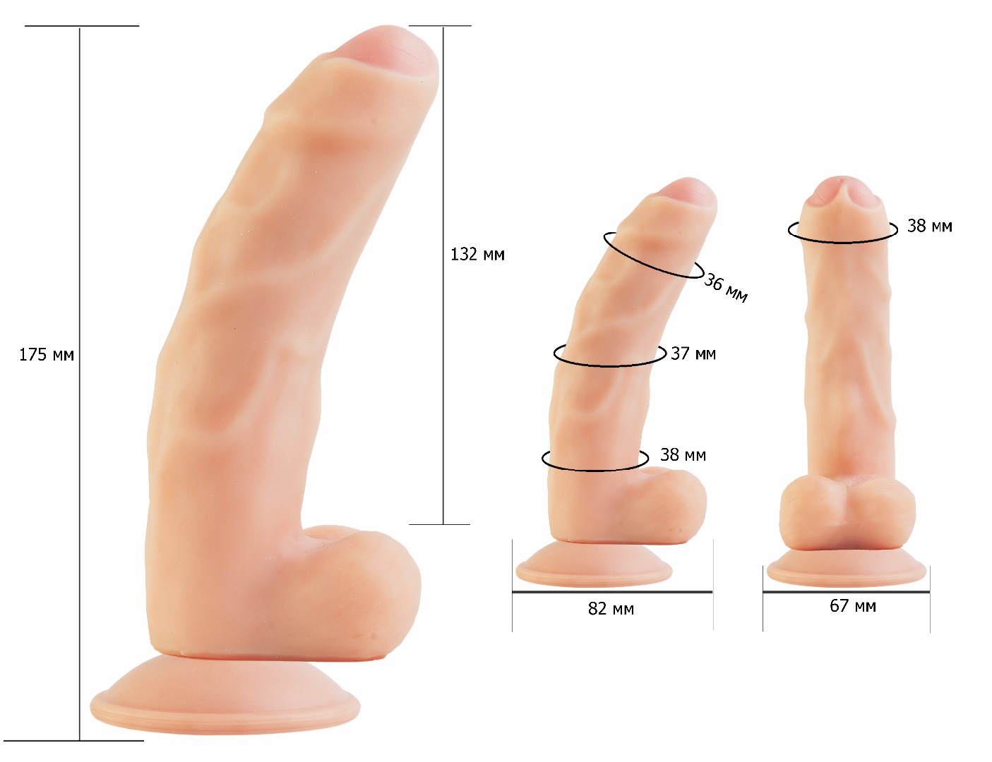 Реалистичный фаллоимитатор телесного цвета на присоске с ярко-выраженной головкой. Необычайно приятный, рельефный, с двуслойной структурой изделия. Материал термоэластопласт (tpr/tpi) передающий эффект мягкой реалистичной текстуры кожи, не имеет швов. Характеристика: без фталатов, общая длина – 18 см, рабочая длина- 13 см, максимальный диаметр- 3,5 см, изделие сертифицировано. Упаковка: картонная коробка с принтом.