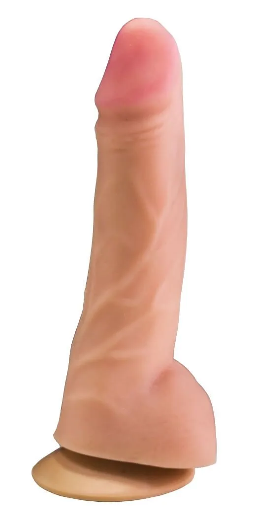 Фаллоимитатор от российской компании Lovetoy 23 сделан из реалистичного материала термопластичной резины (неоскин) и невероятно похож по ощущениям на настоящий член. Фаллос имеет эластичный корпус с необыкновенно подвижной головкой, способной сгибаться до 90%. Поверхность ствола имеет рельеф с венками для более ярких ощущений от стимуляции. На основании игрушки есть присоска, с помощью которой Вы сможете прикрепить ее к любой ровной твердой поверхности, чтобы освободить руки или поэкспериментировать с позами.