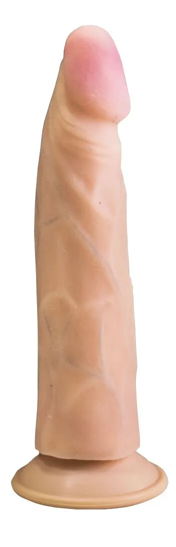 Фаллоимитатор от российской компании Lovetoy 23 сделан из реалистичного материала термопластичной резины (неоскин) и невероятно похож по ощущениям на настоящую кожу. Фаллос имеет эластичный корпус с необыкновенно подвижной головкой, способной сгибаться до 90%. Поверхность ствола имеет рельеф с венками для более ярких ощущений от стимуляции. На основании игрушки есть присоска, с помощью которой Вы сможете прикрепить ее к любой ровной твердой поверхности, чтобы освободить руки или поэкспериментировать с позами.