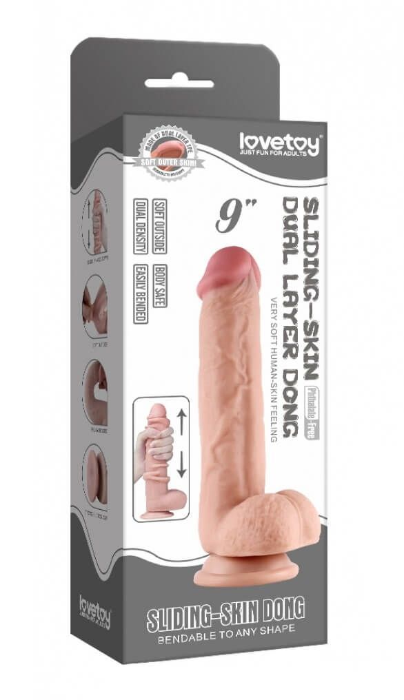 Фаллоимитатор Lovetoy 9 inch Sliding Skin Dual Layer Dong, телесный