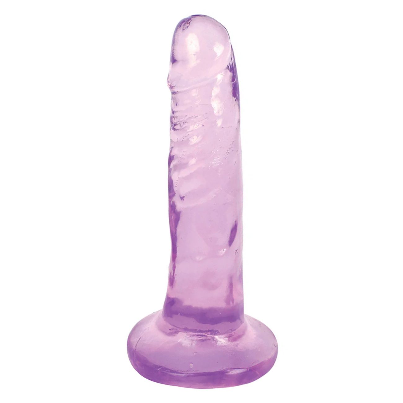 Игрушка сделана из прозрачного поливинилхлорида и похожа на застывшую льдинку. Она переливается на свету, радуя глаз яркими бликами. Модель обладает реалистичным, умеренно текстурированным стволом, копирующим естественный рельеф возбужденного пениса. На поверхности заметны неровности, складки и выступы. Верхняя часть увенчана реалистичной головкой, под которой заметны волнообразные складочки «крайней плоти». Мошонка отсутствует, зато внизу есть великолепная присоска для крепления на гладких поверхностях.